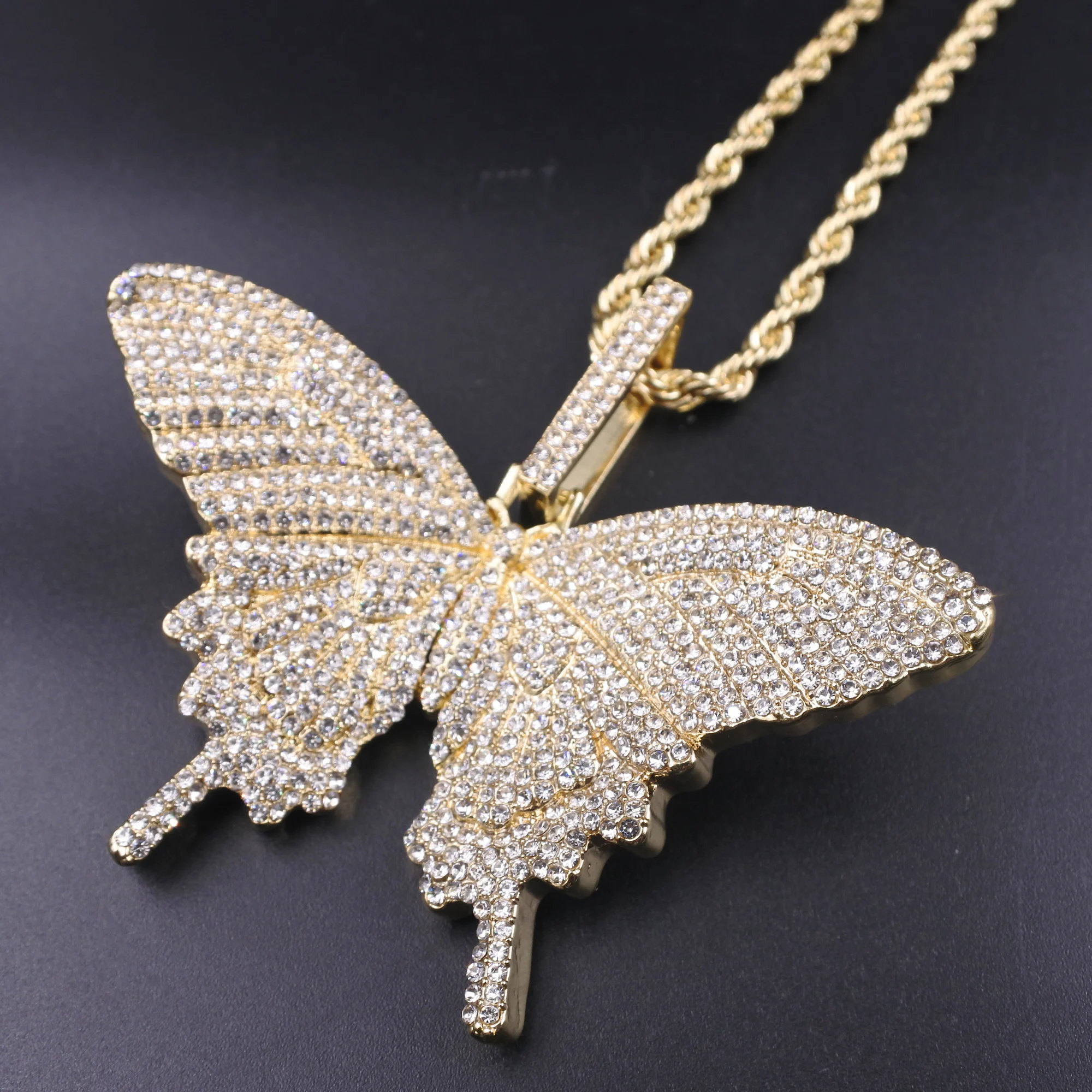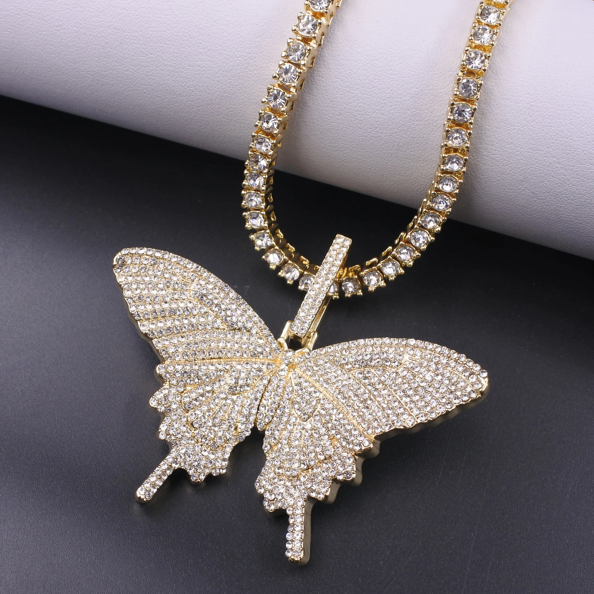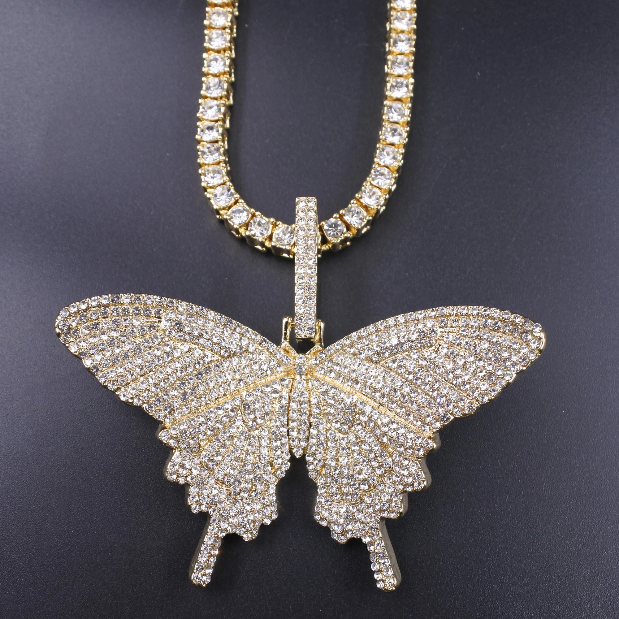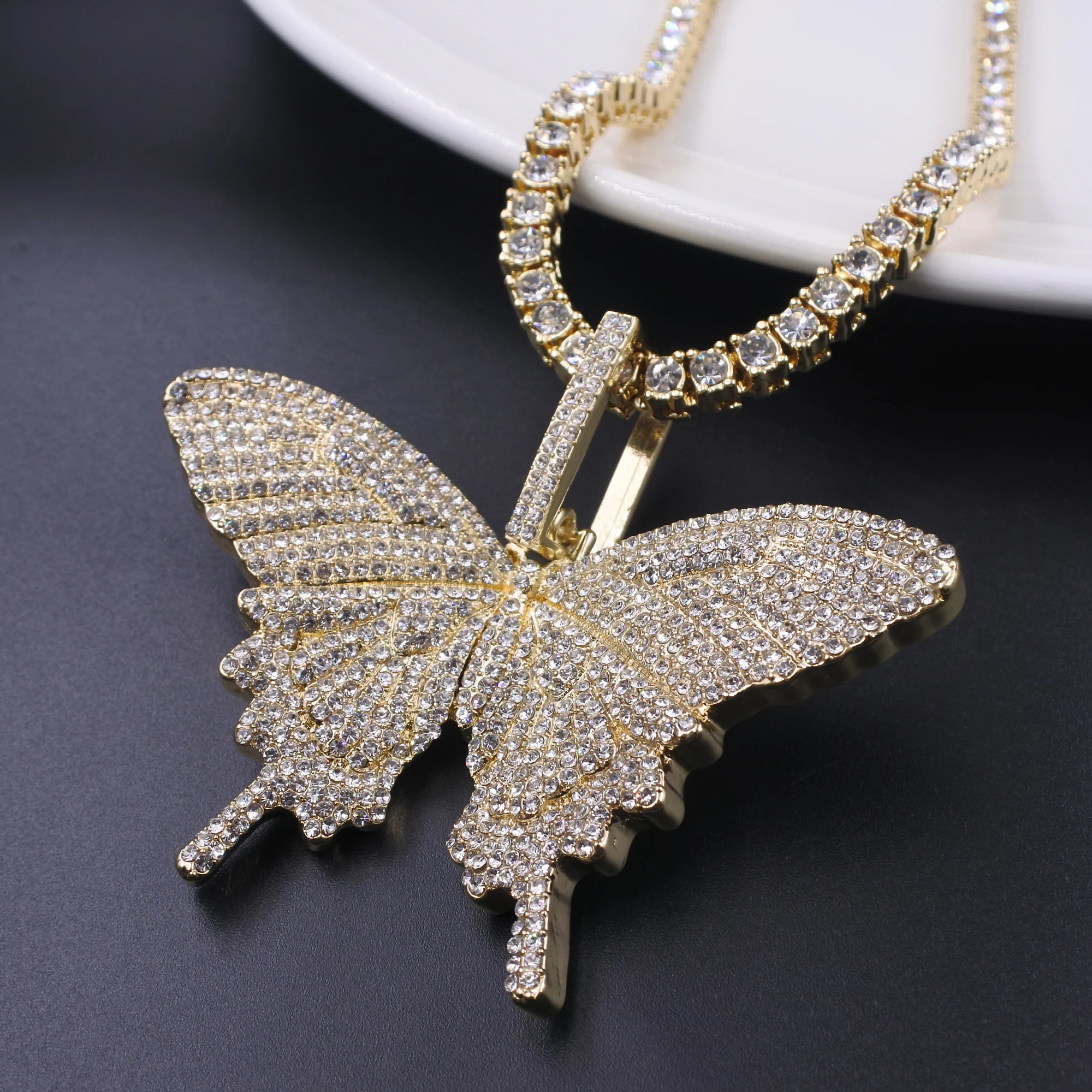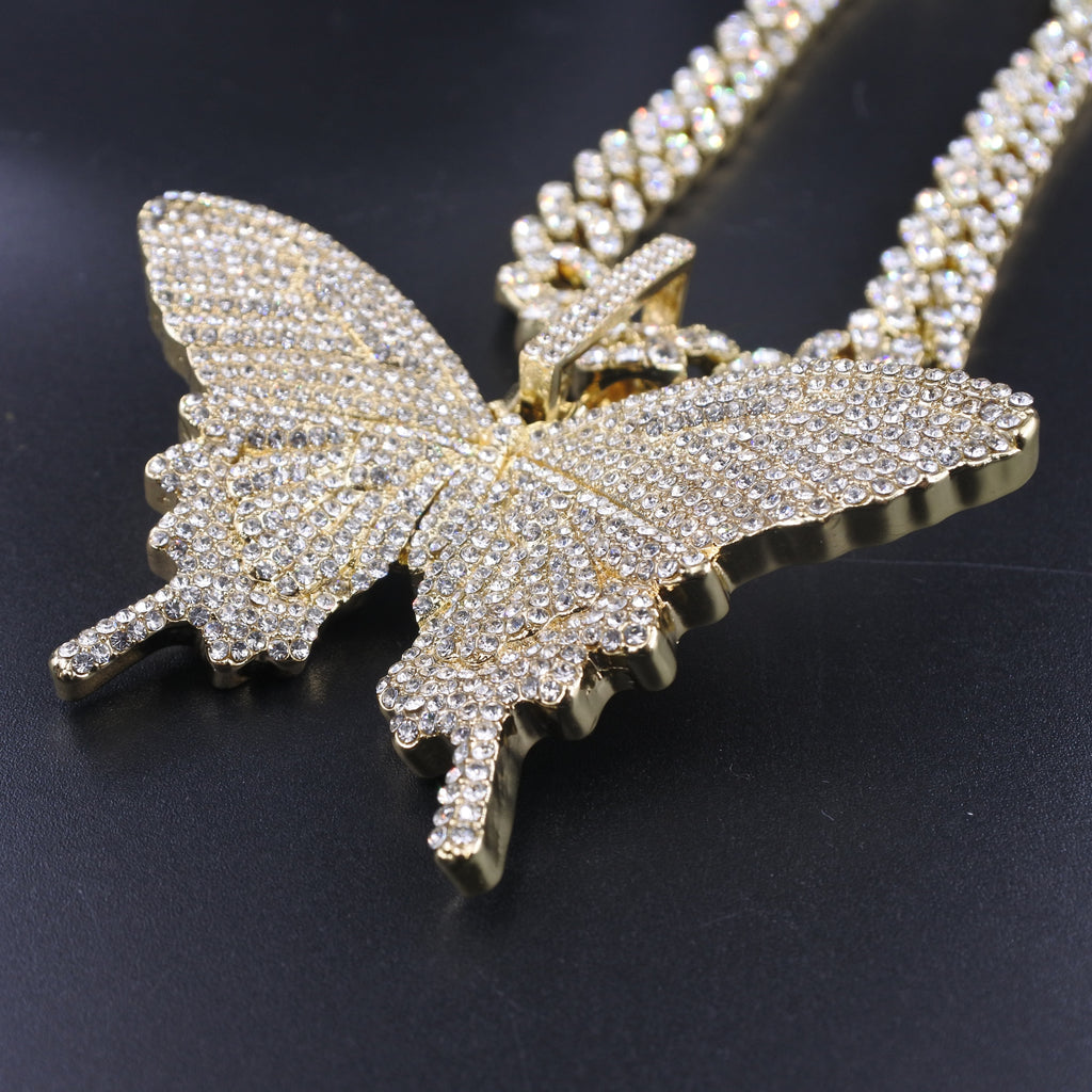 Big size Butterfly pendant charm 12mm bubble miami curb cuban chain hip hop necklace rapper gift rock men women jewelry golden