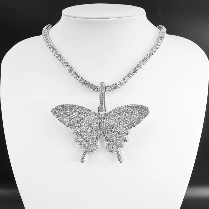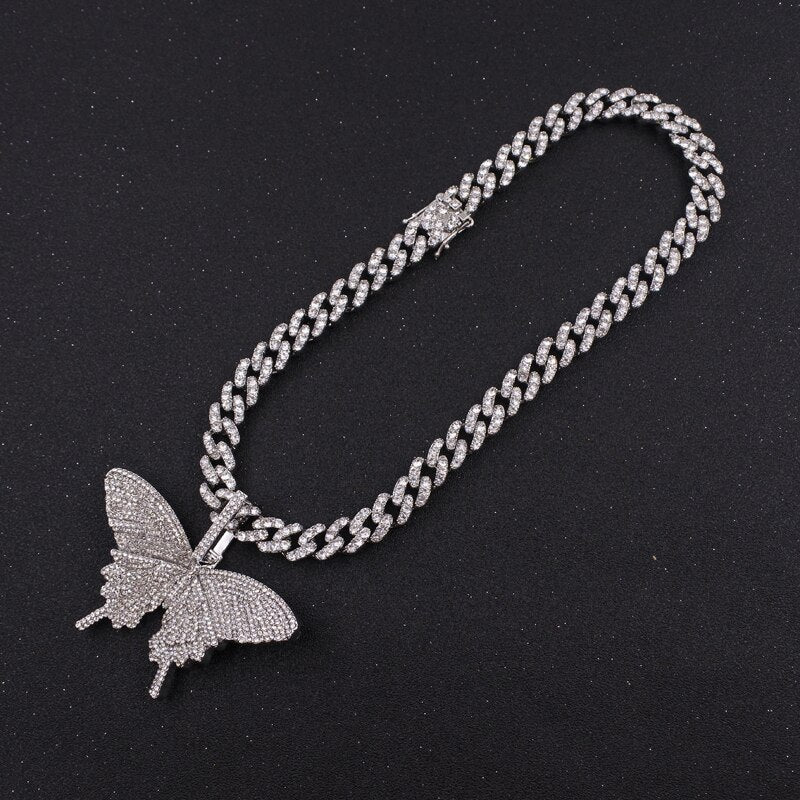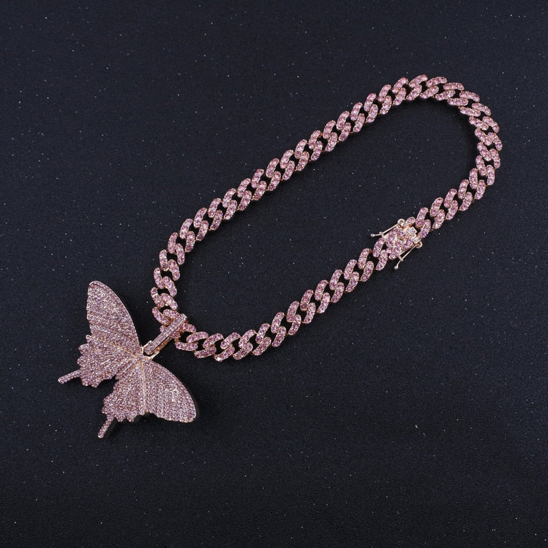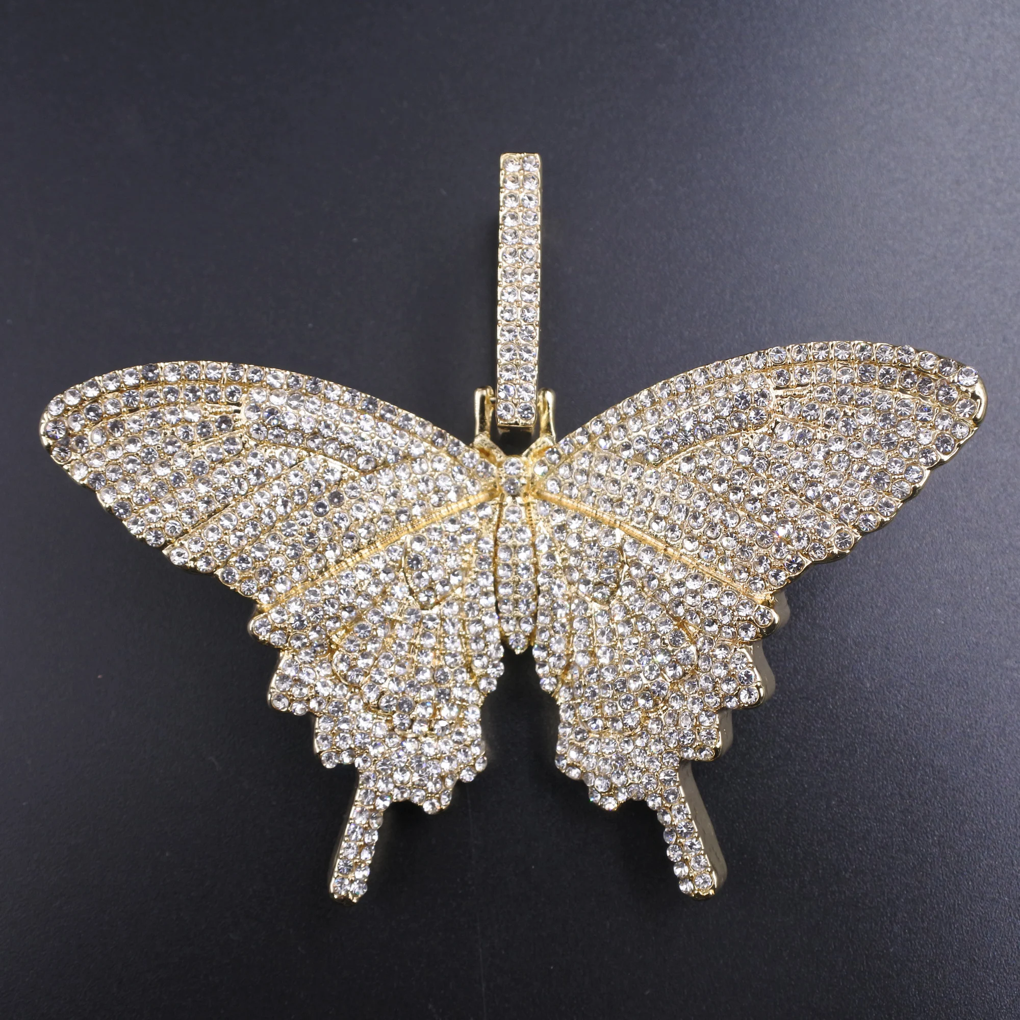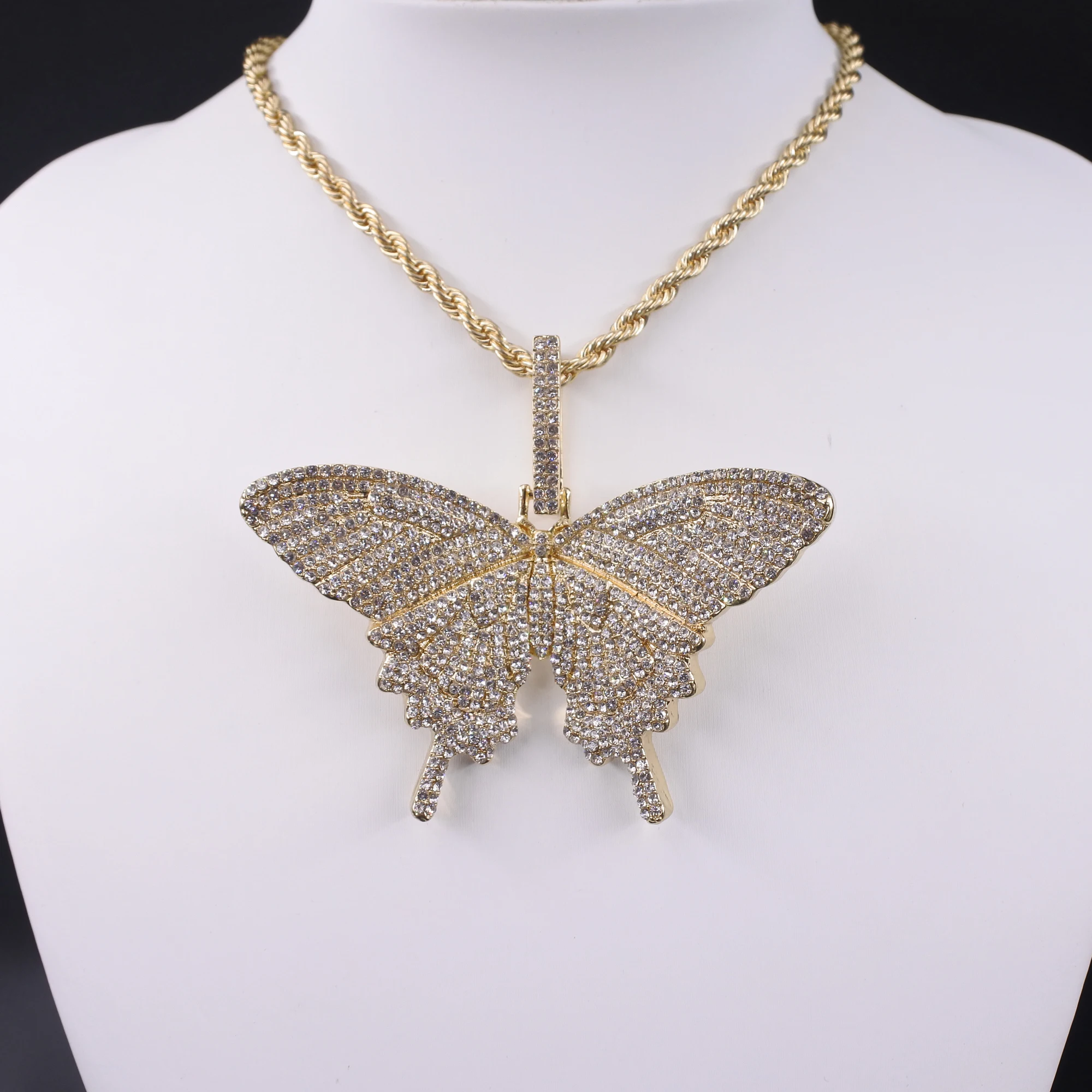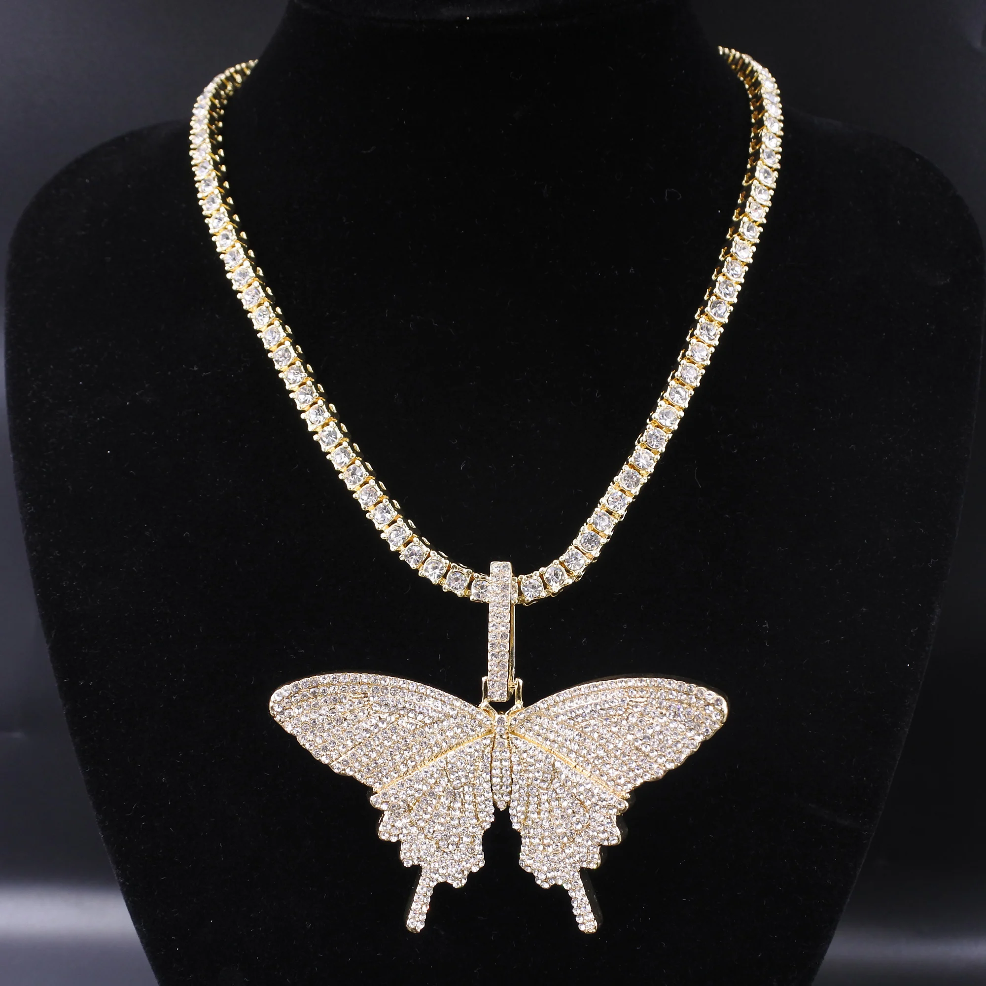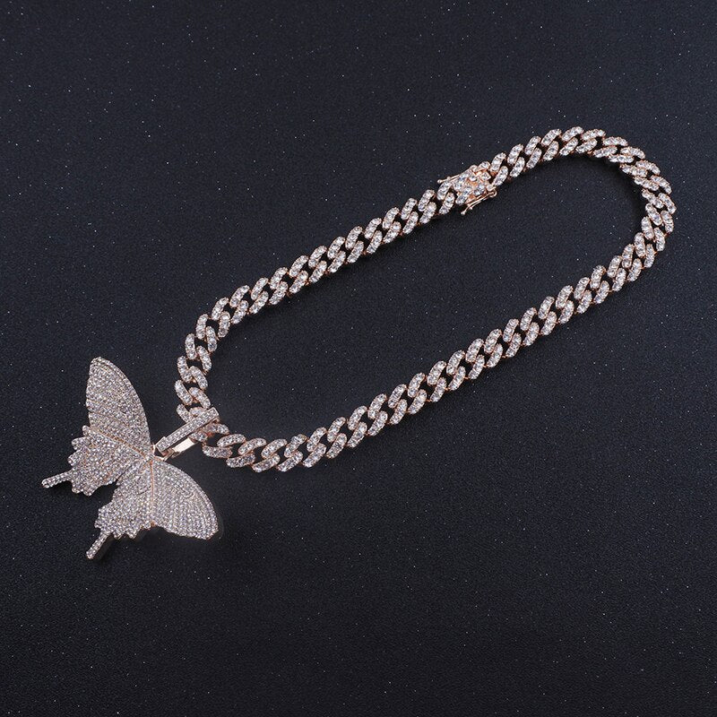 Big size Butterfly pendant charm 12mm bubble miami curb cuban chain hip hop necklace rapper gift rock men women jewelry golden