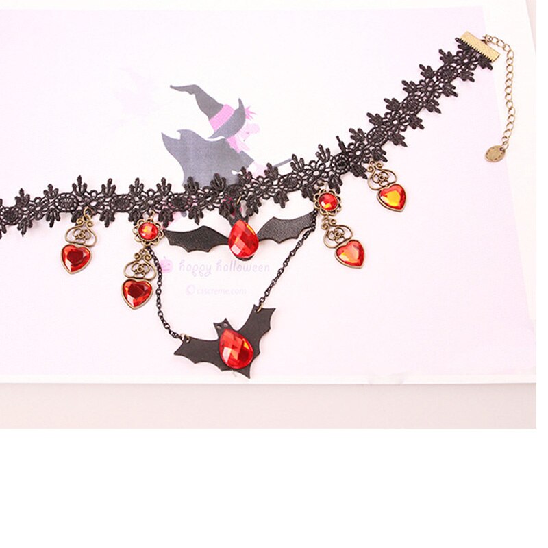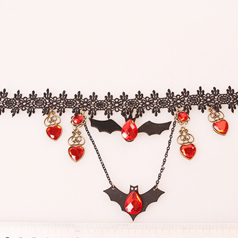 Black Hollow Velvet Chokers Bats Lace Necklace Heart Rhinestone Charm Statement Chain Necklaces For Women Halloween Jewelry Gift