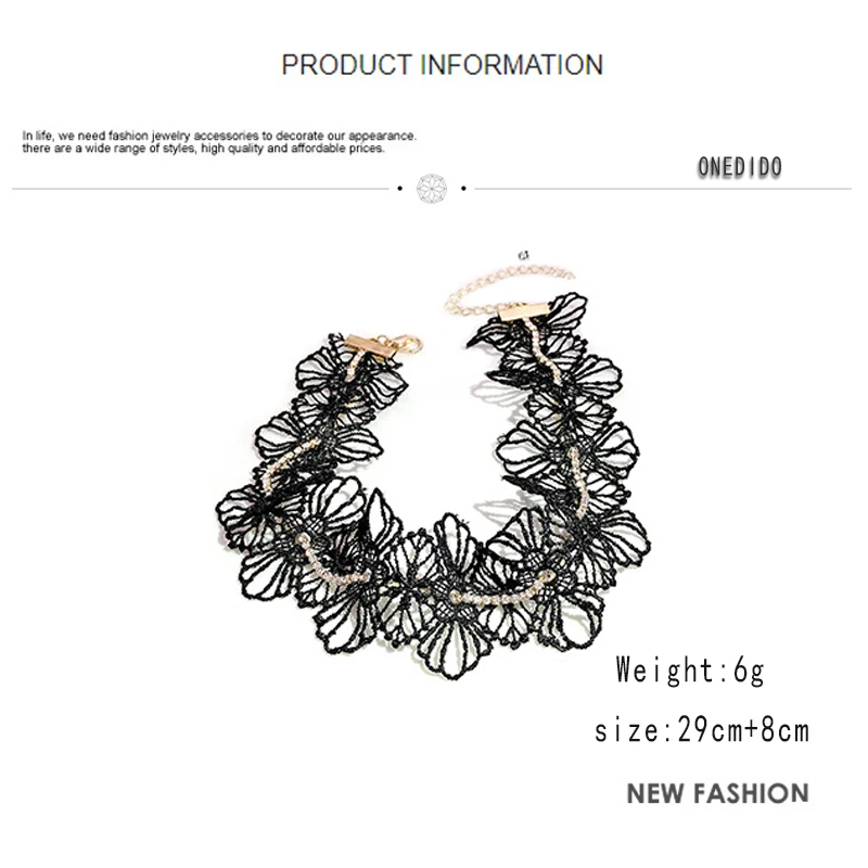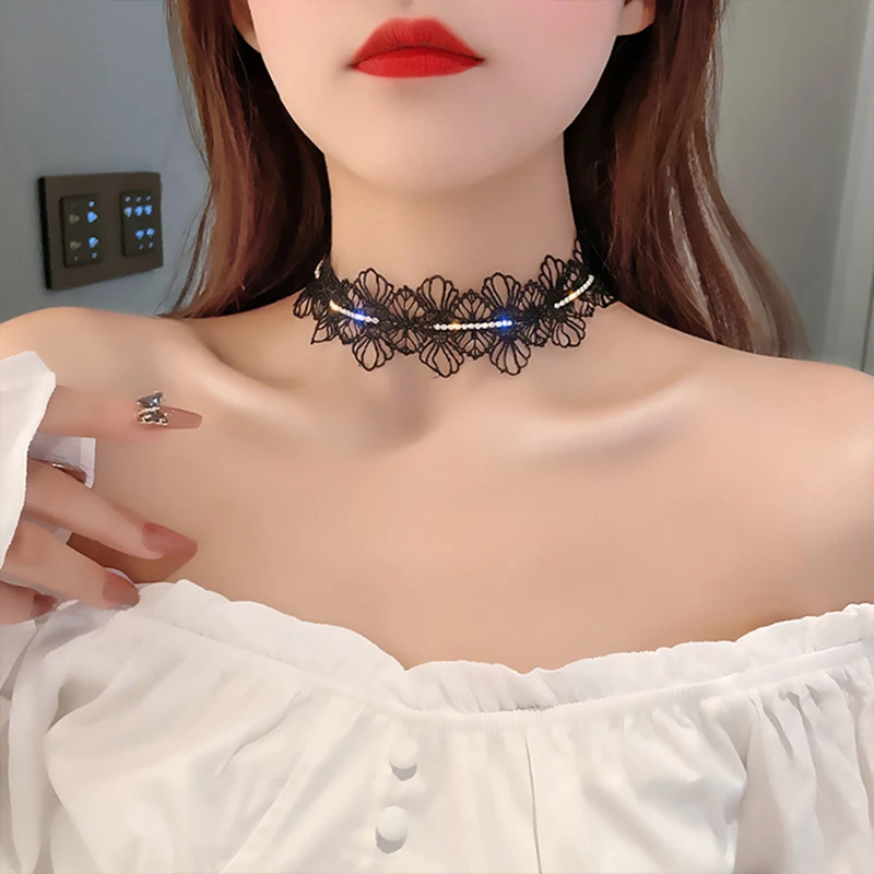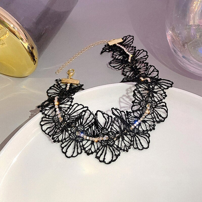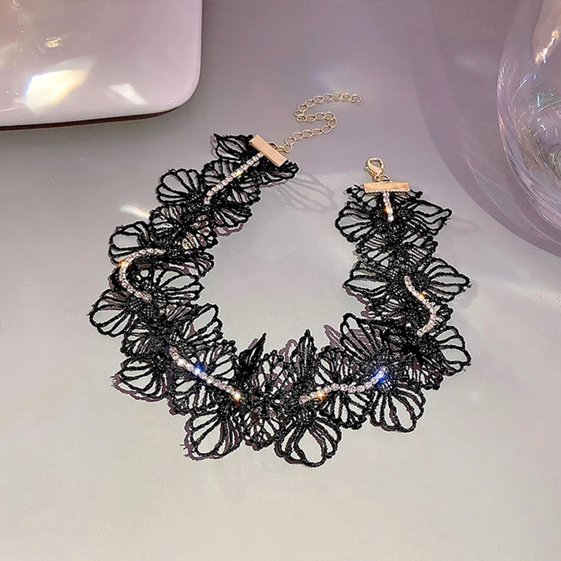Black Lace Necklaces Women Girl Gift Trendy French Romantic Style Clavicle Chain Simple Flowers Beach Jewelry