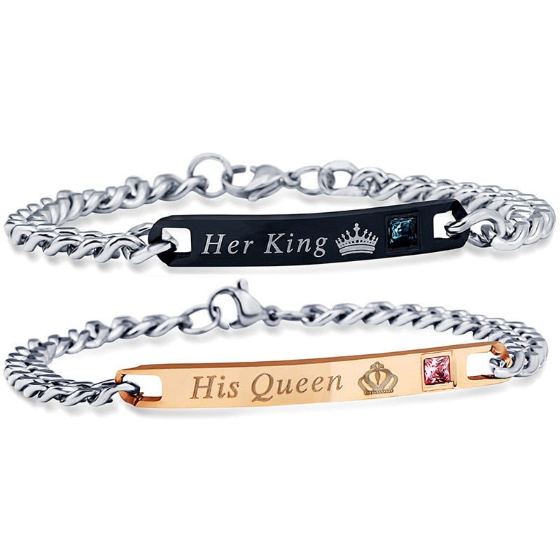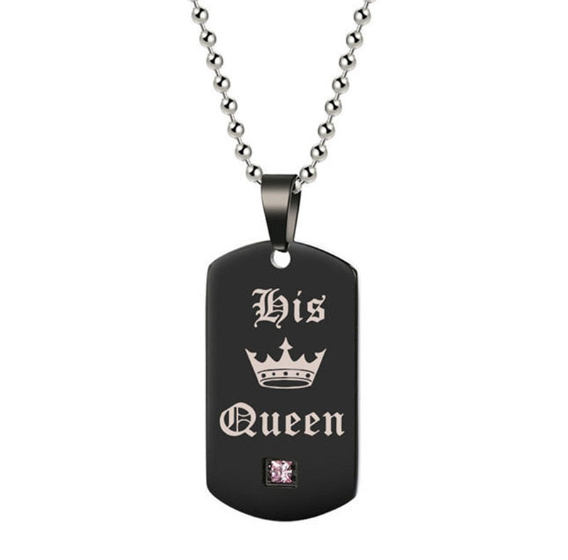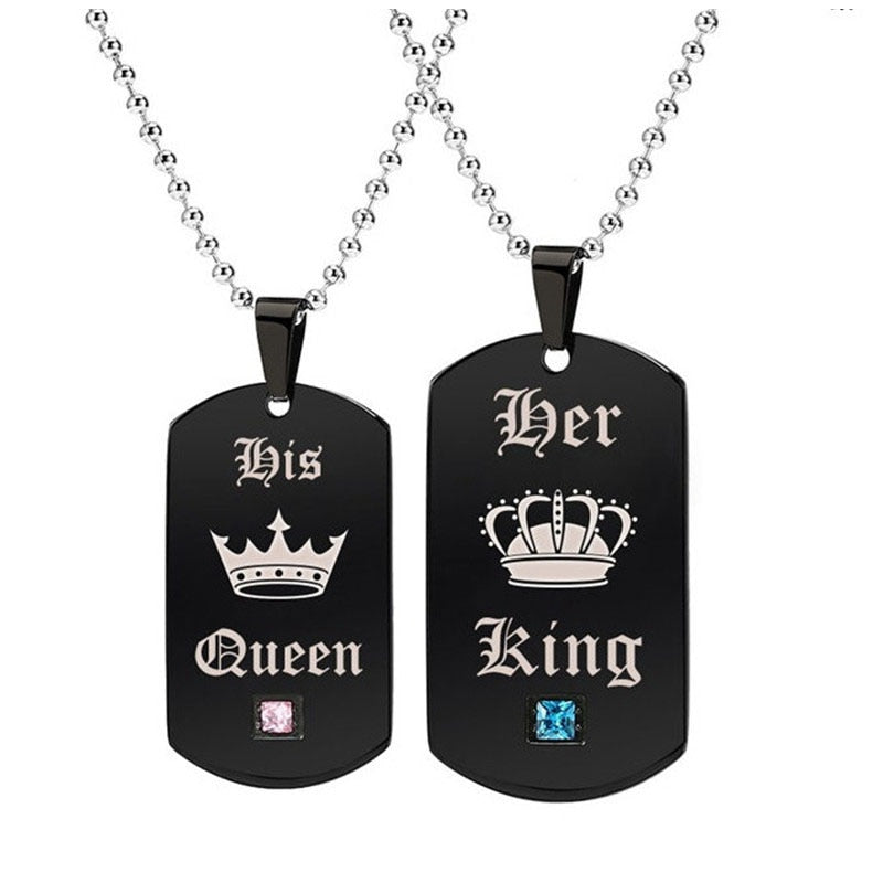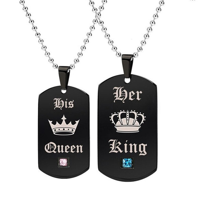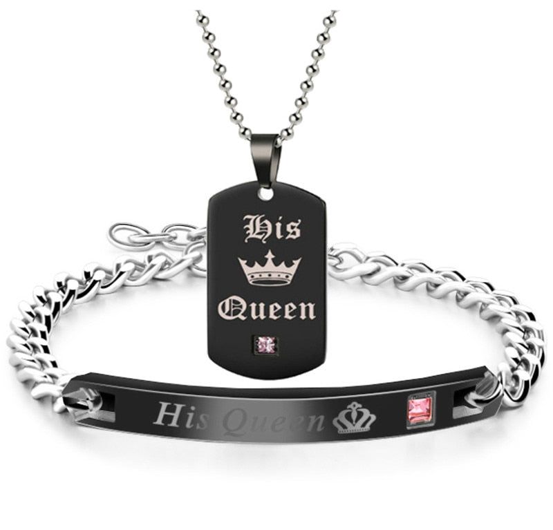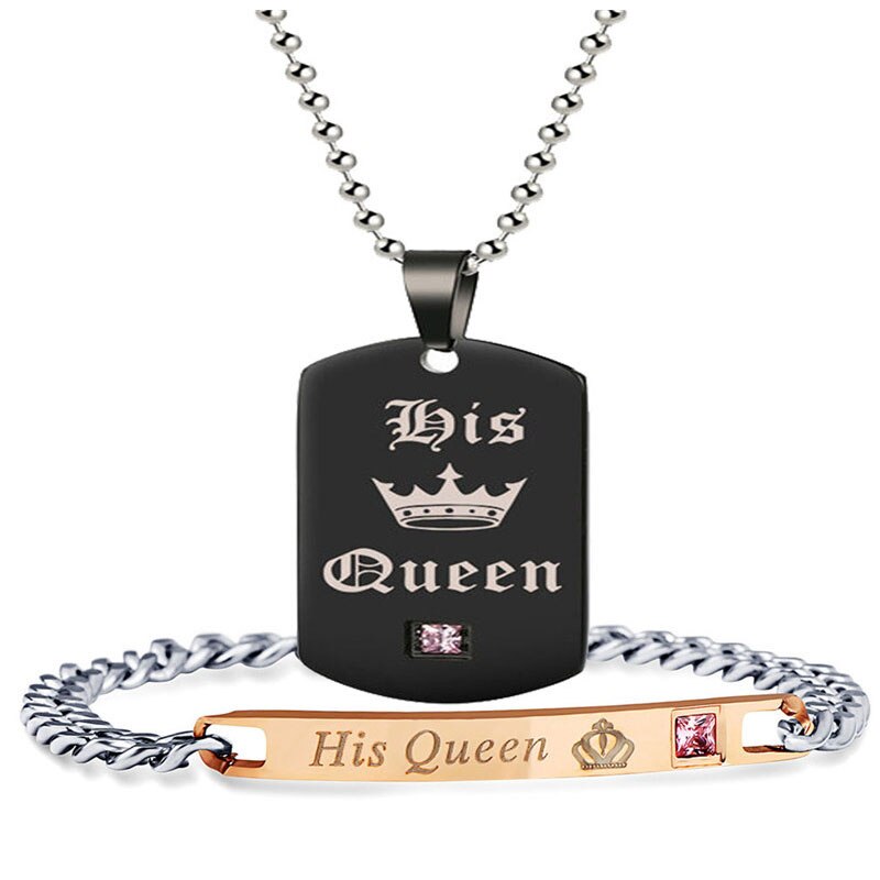 Black Necklaces & Pendants Her King And His Queen Couple Stainless Steel Pink Blue Crystal Bracelet Necklace Set