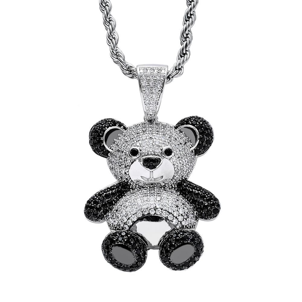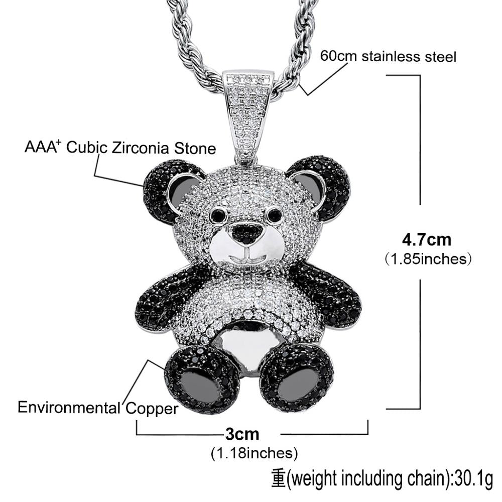 Bling Bling Iced Out Teddy Bear Pendant Pave Full Cubic Zircon Hip Hop Jewelry Panda Necklace For Women Men Gift