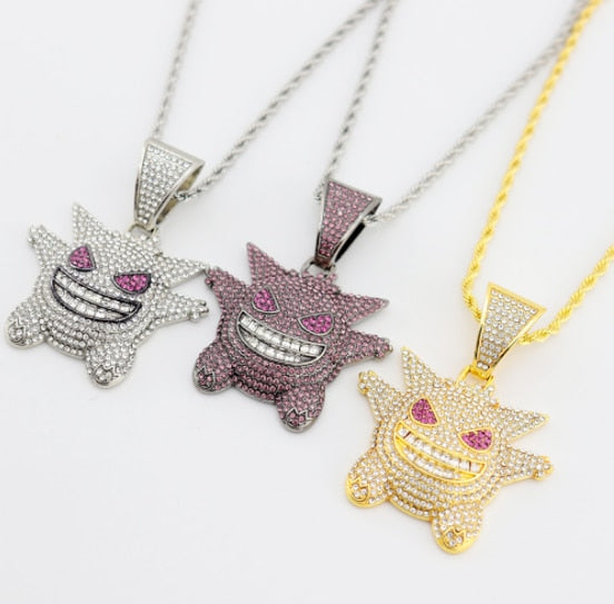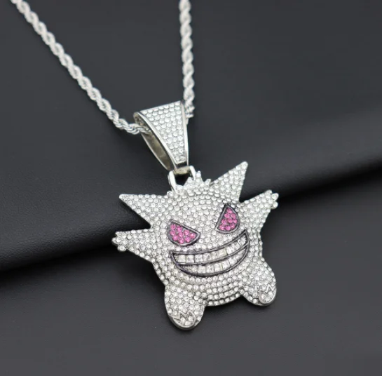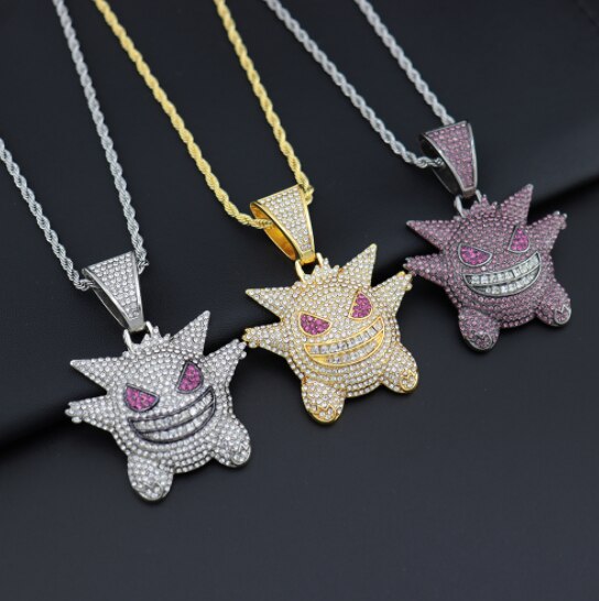 Bling CZ Hip Hop Necklace Cartoon Micro Inlaid Purple Crystal Jewelry Pendant Clothes Jewelry Men's Women's Gift