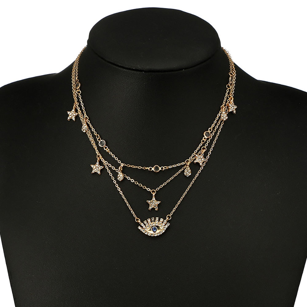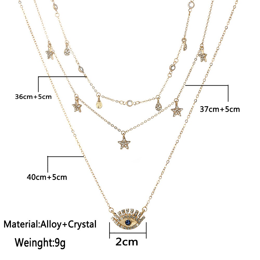 Bls-miracle Multilayer Necklace for Women Long Chain Turkish Eye Pendant Necklaces Trendy Crystal Star Water droplets Necklaces