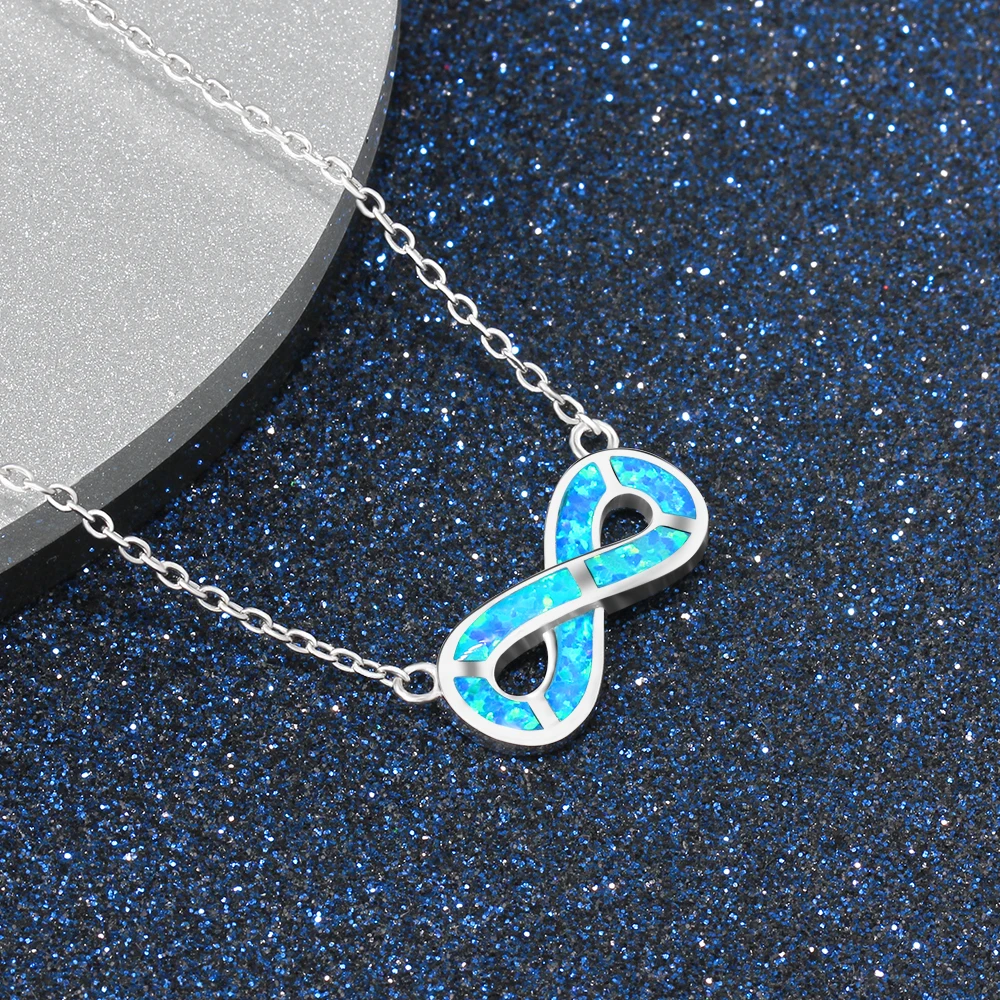 Blue Fire Opal Necklace Pendants Trendy Jewelry 100% 925 Sterling Silver for Women Represent Infinity Love Gifts Fine Jewelry