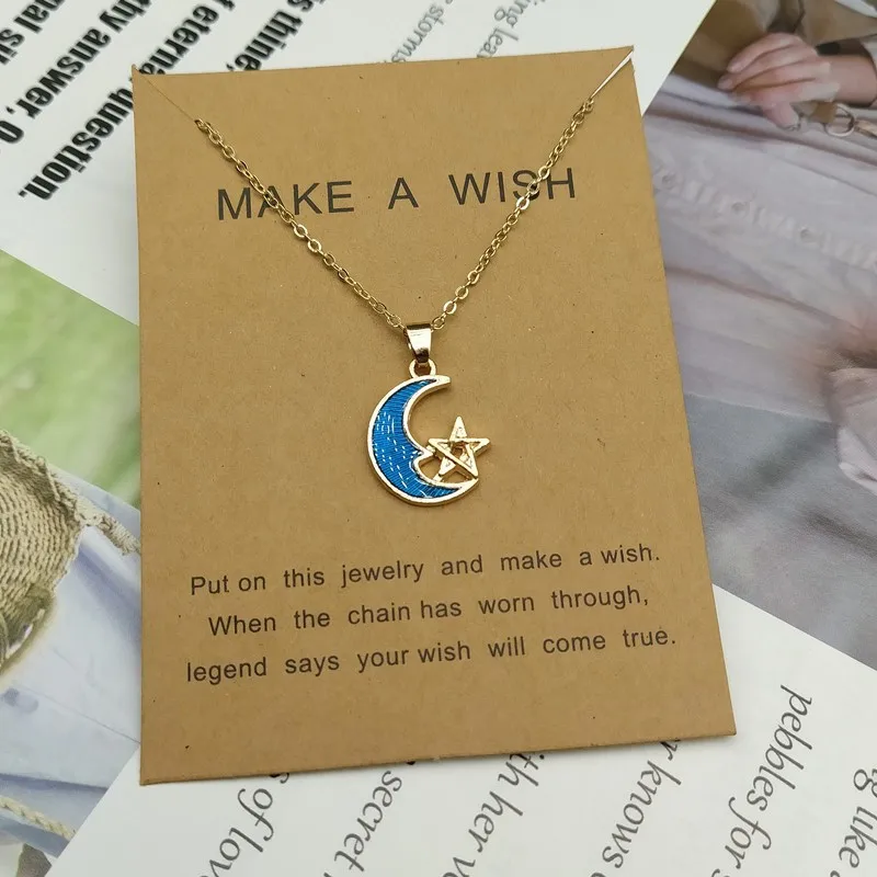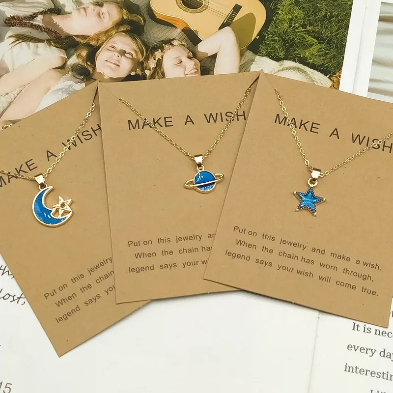 Blue Star Moon Planet Pendant Necklaces for Women Enamel Clavicle Chain Choker Girl Party Statement Jewelry Gifts