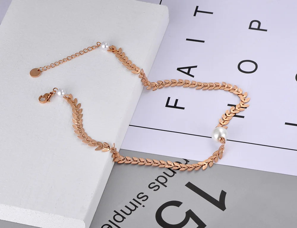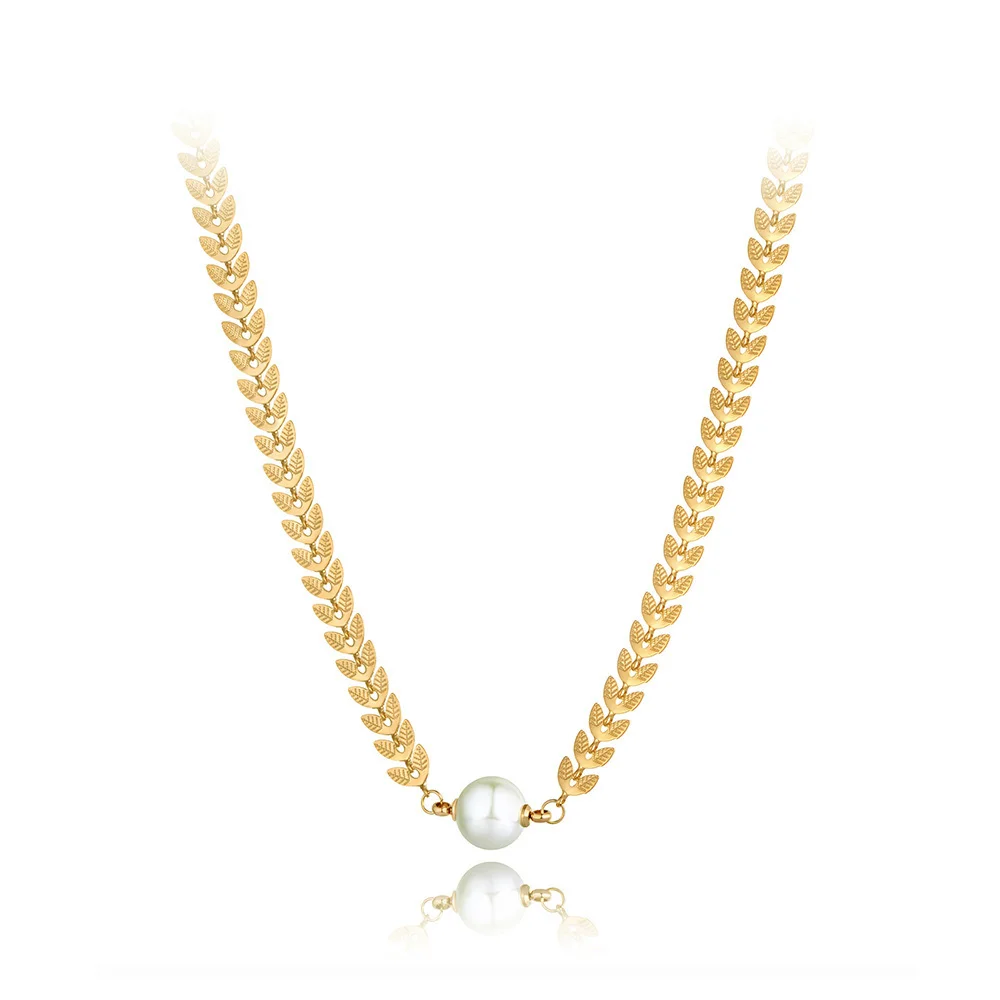 BOBOTUU Goth Stainless Steel White Pearl Choker Necklaces For Women Girls Bohemia Party Leaflet Charm Pendant Necklace BN20098