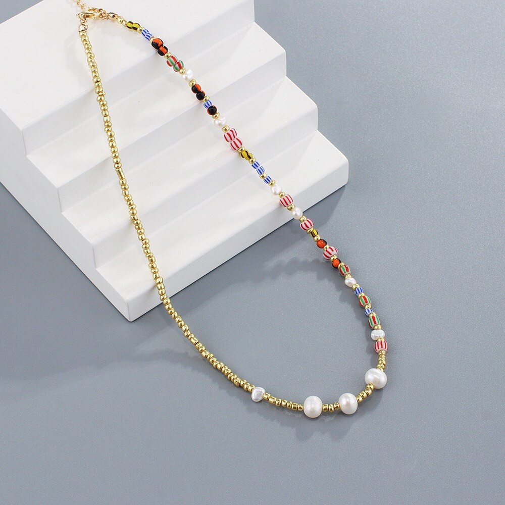 Bohemia Hand-made Seed Beads Clavicle Chain Necklaces for Women with Nature Fresh Water Pearl Celebrity Favorite Jewelry
