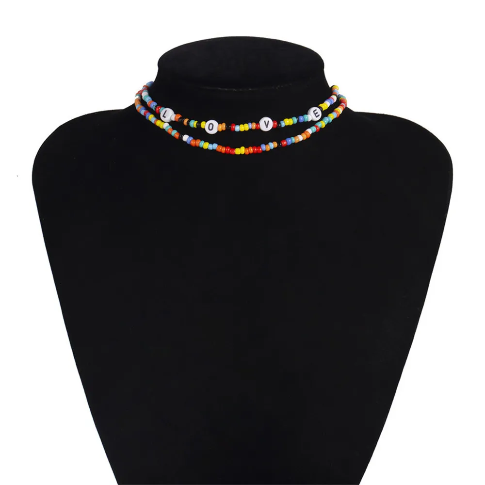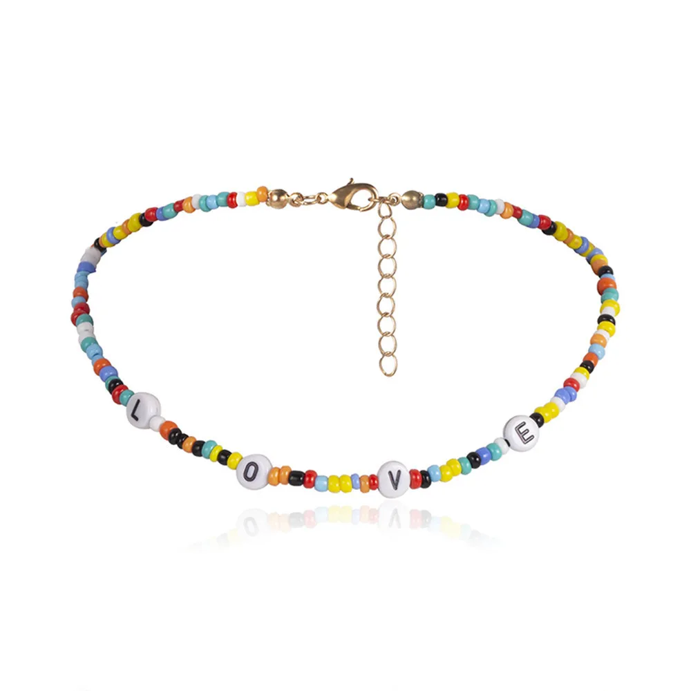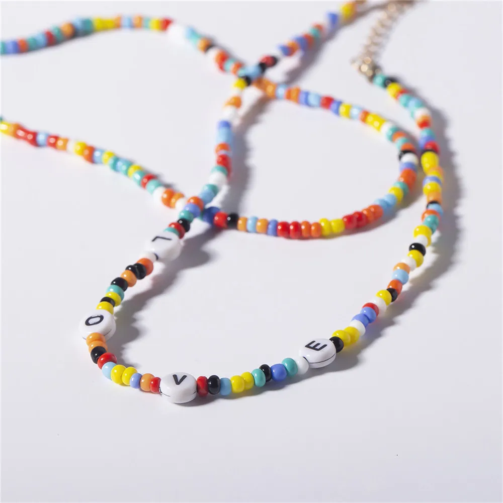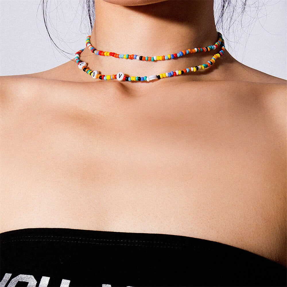 Bohemia Initial Letter Necklace handmade Bead choker rainbow candy shell personality multi-layer Necklace women's jewelr