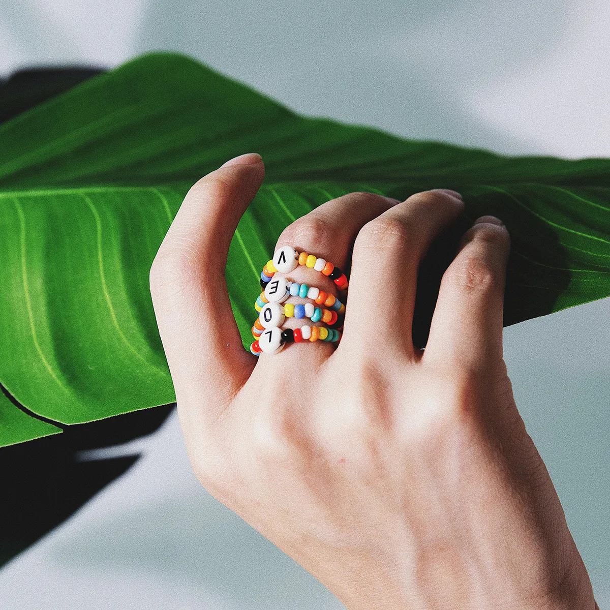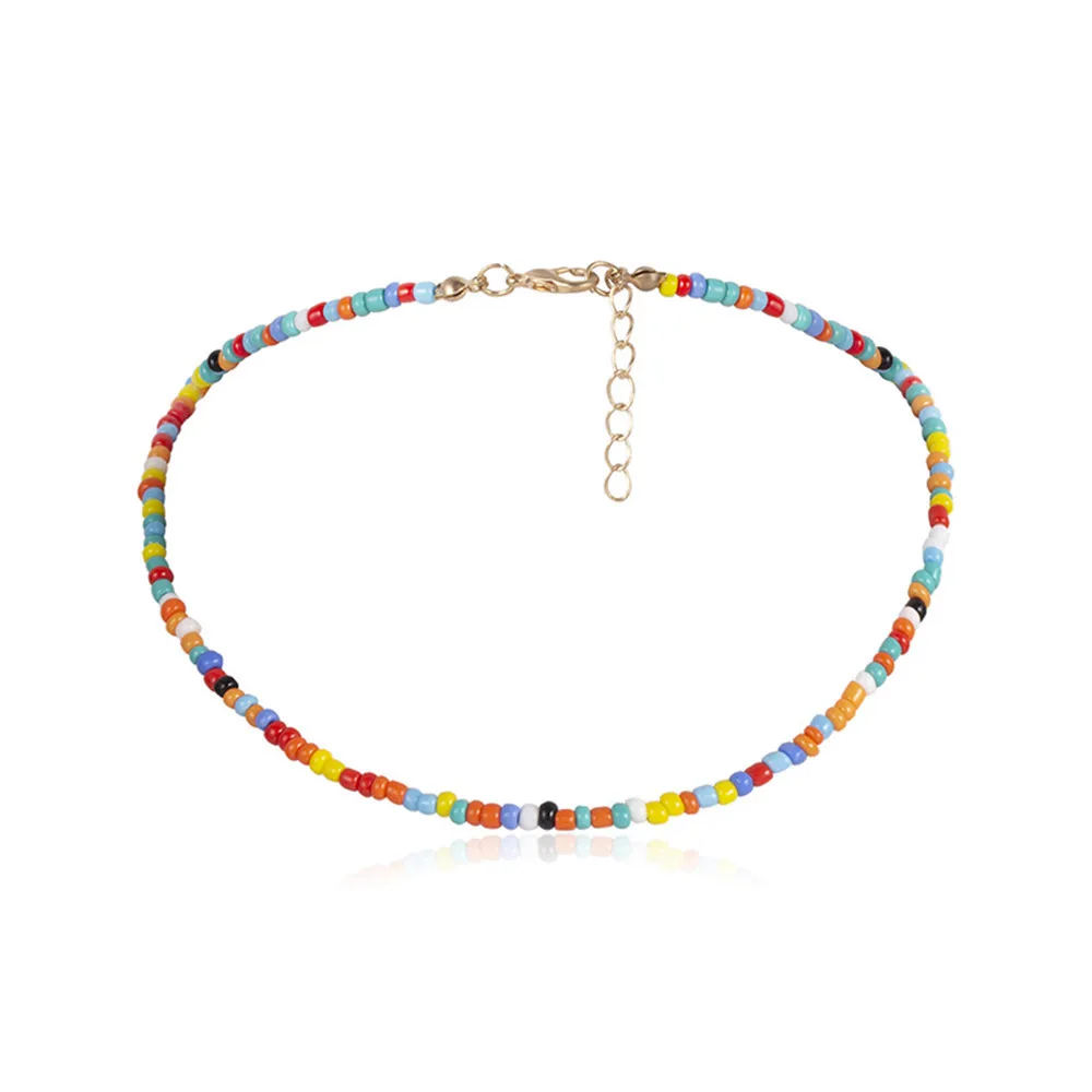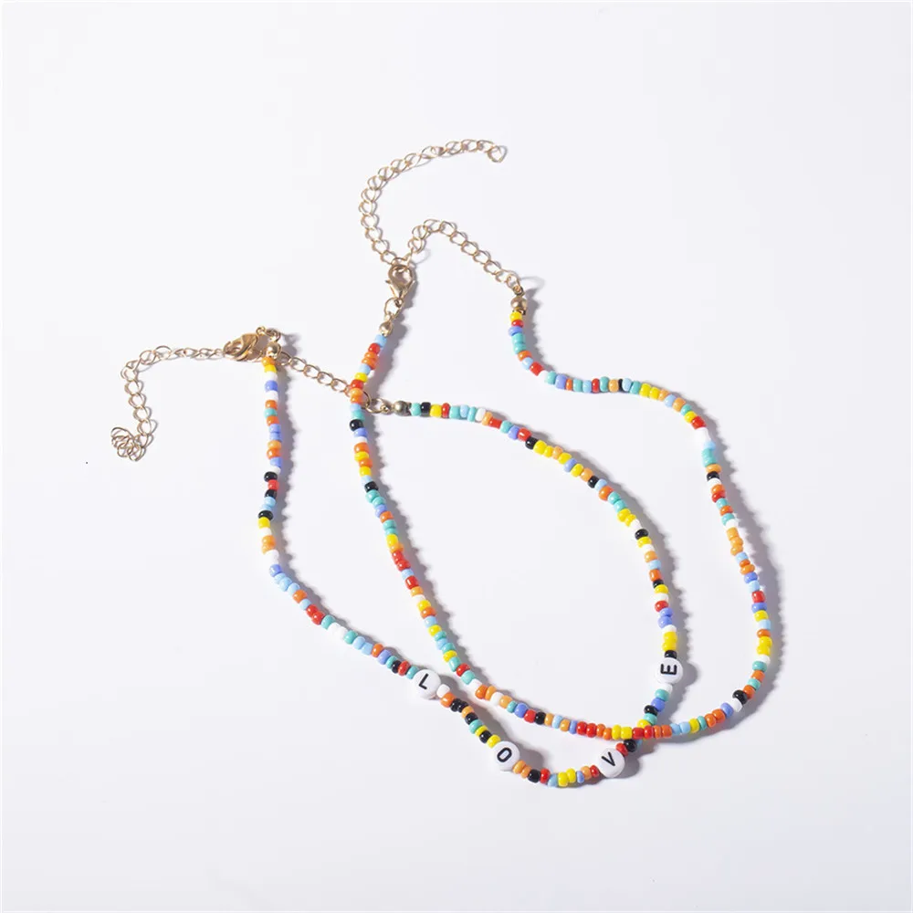 Bohemia Initial Letter Necklace handmade Bead choker rainbow candy shell personality multi-layer Necklace women's jewelr