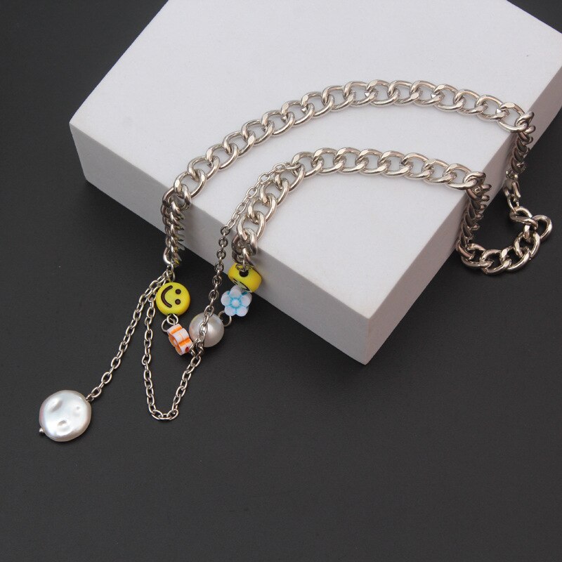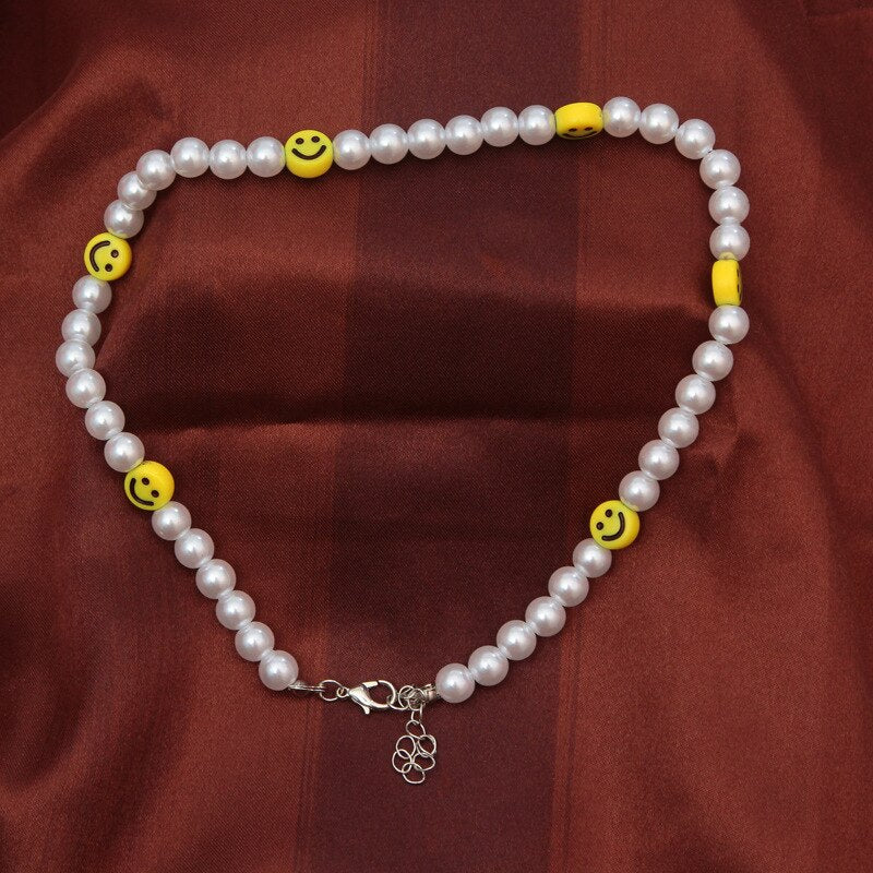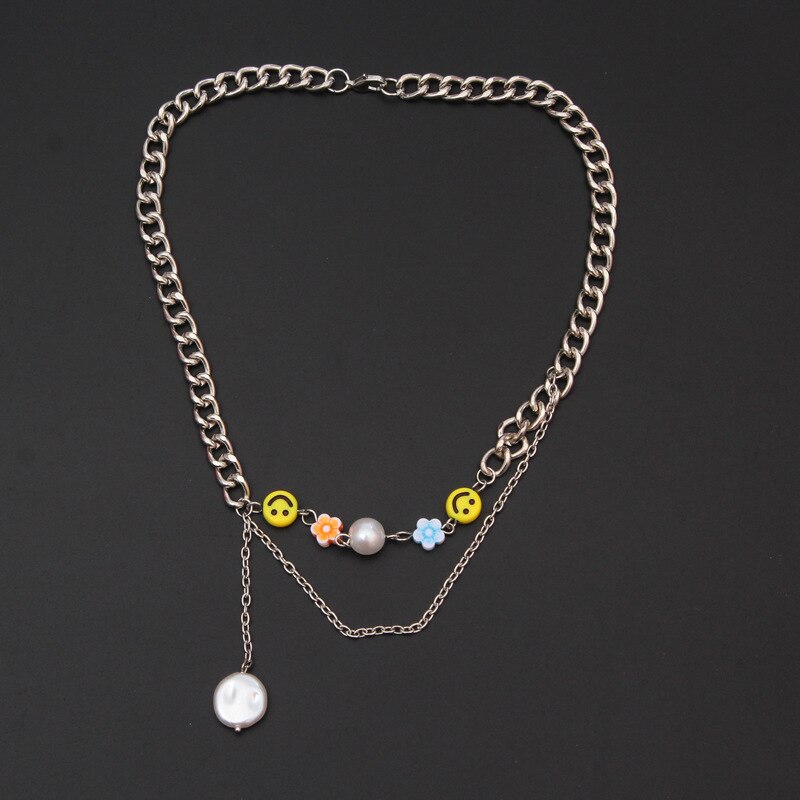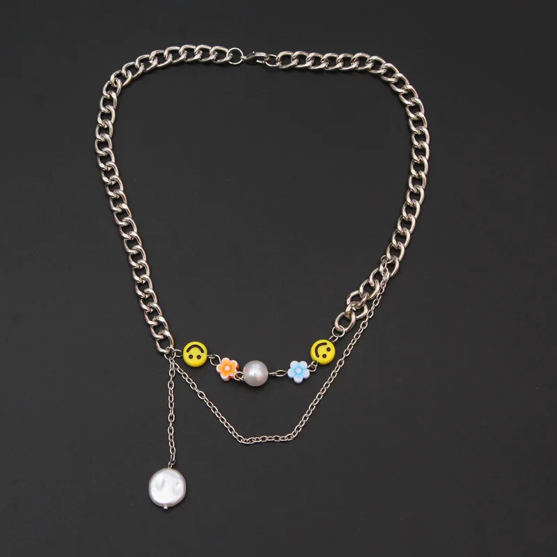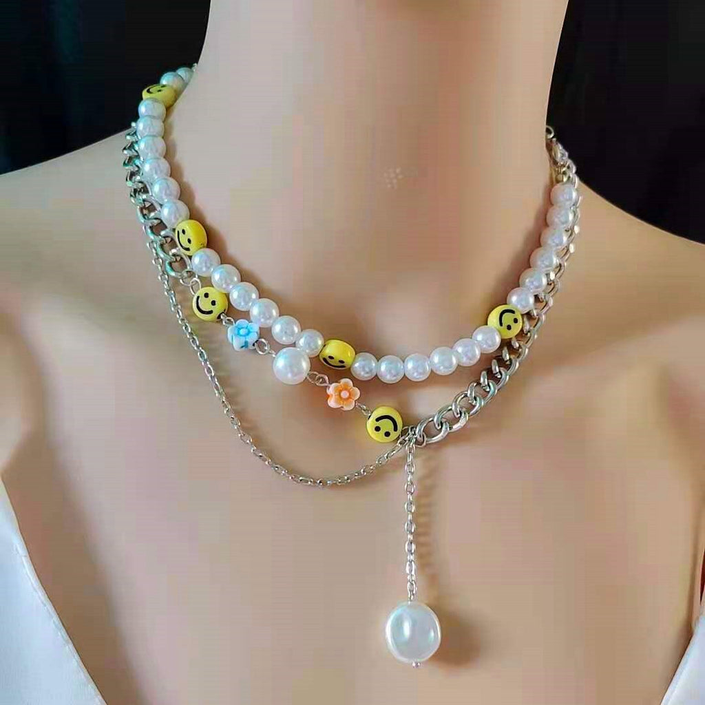Bohemia Multilayer Smiley Pearl Rainbow Beaded Choker Necklace For Women Acrylic Flower Beads Chain Necklaces Beach Jewelry