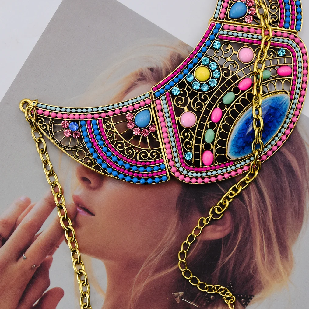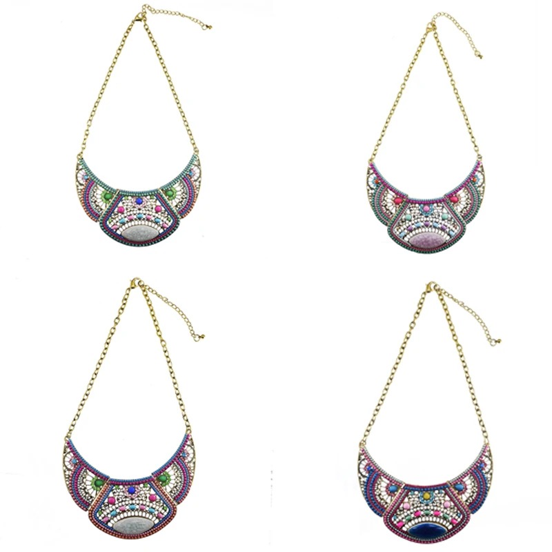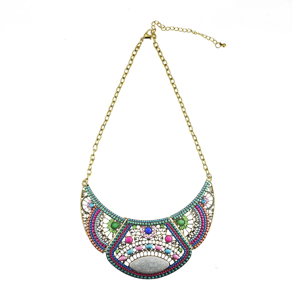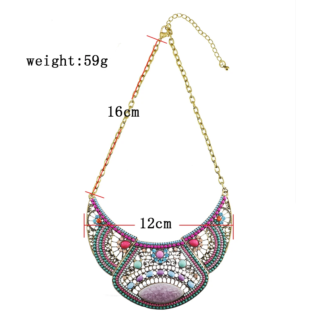 Bohemian Alloy Colorful Necklace Retro Personality Exaggerated Sweater Chain Wild Half Crescent Pendant.