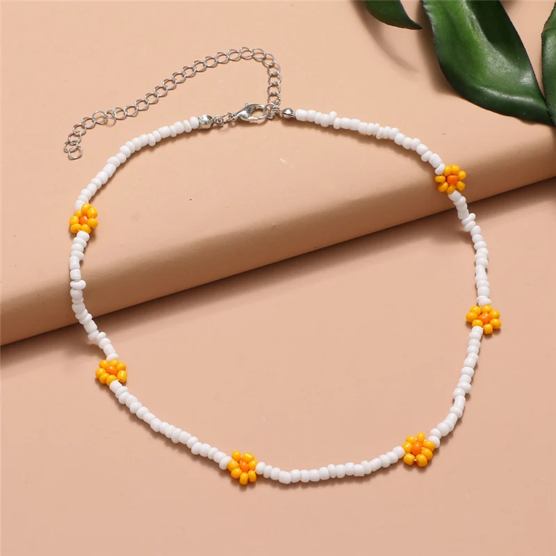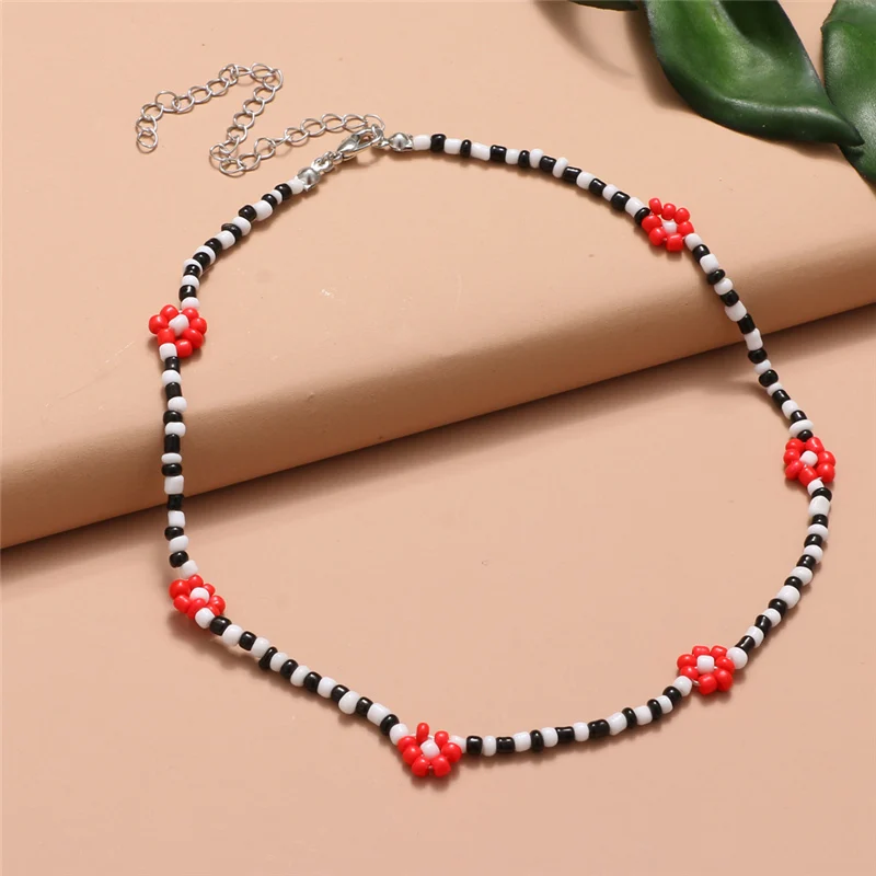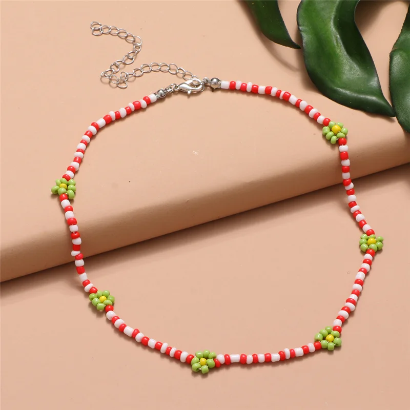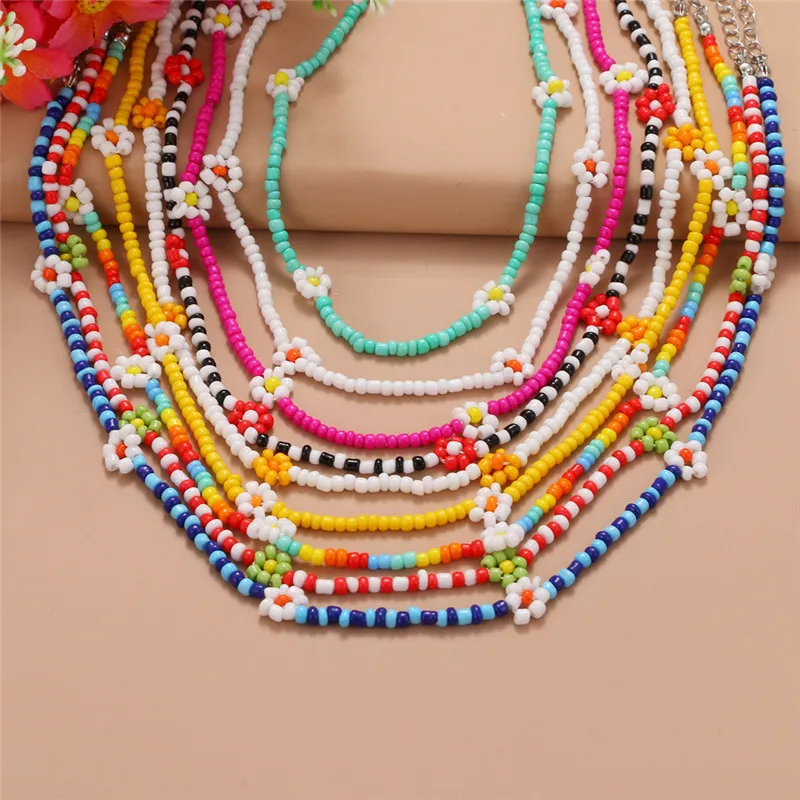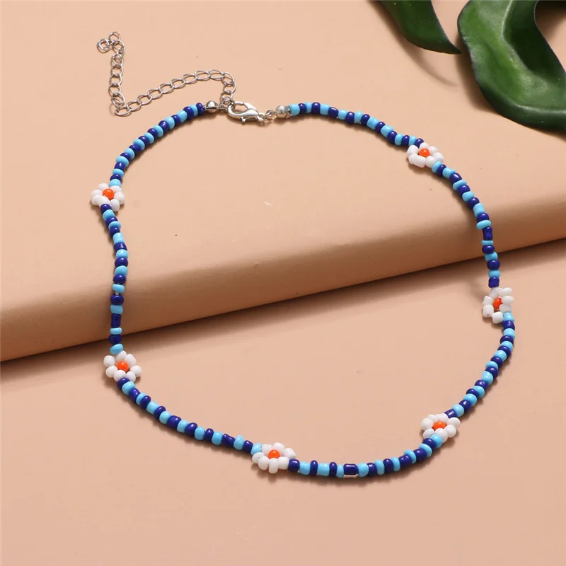 Bohemian Handmade Rainbow Seed Beads Necklace Women Sweet Daisy Acrylic Flowers Beaded Choker Necklace Jewelry Short Necklace