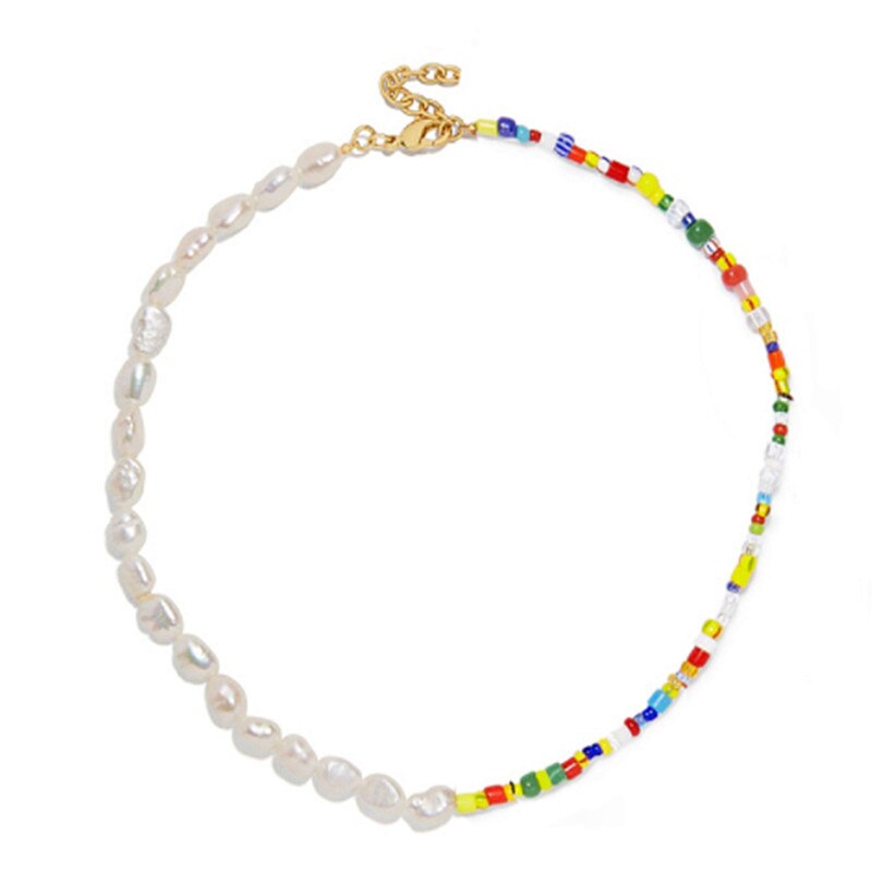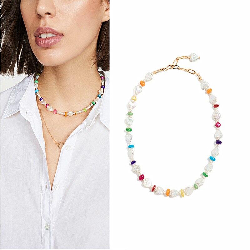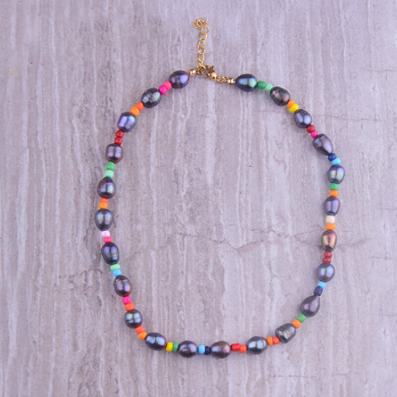 bohemian rainbow neclase women choker chaine femme jewelry sautoir femme long rosary stone freshwater pearl necklace jewelery