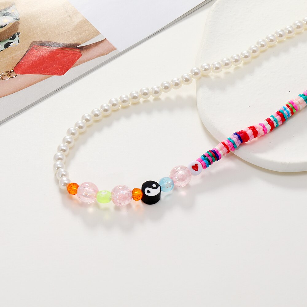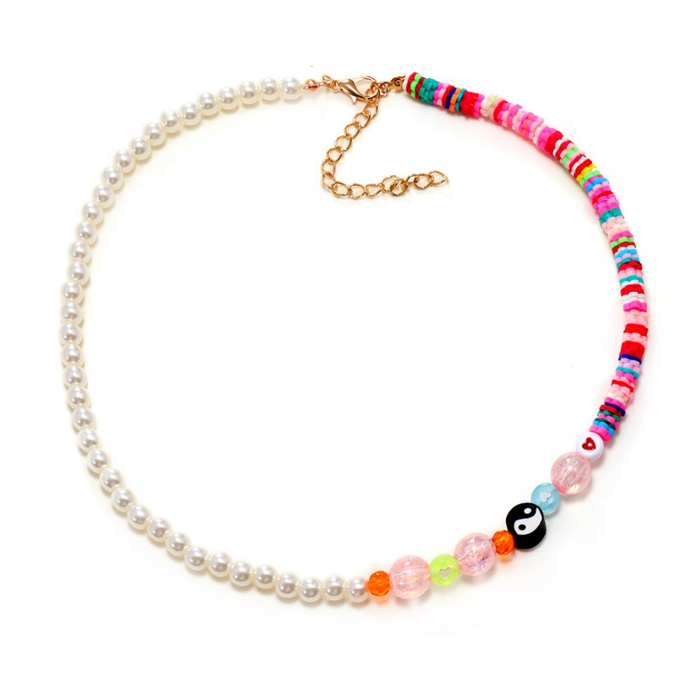 Bohemian Soft Pottery Flower Imitation Pearls Handmade Beaded Choker Necklace For Women