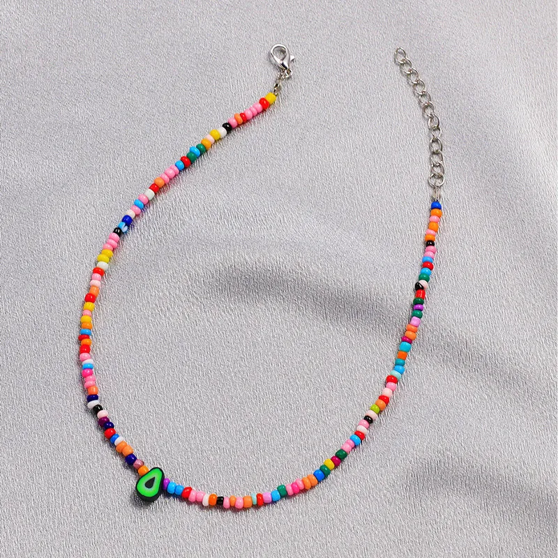 Bohemian Stained Glass Rice Bead Necklace Natural Pearl Women's Short Necklace Charm Jewelry Handmade Christmas Gift Girl