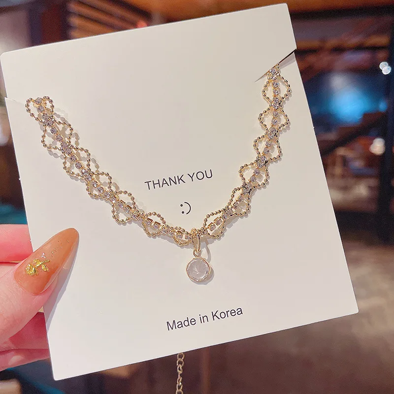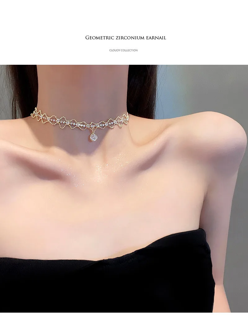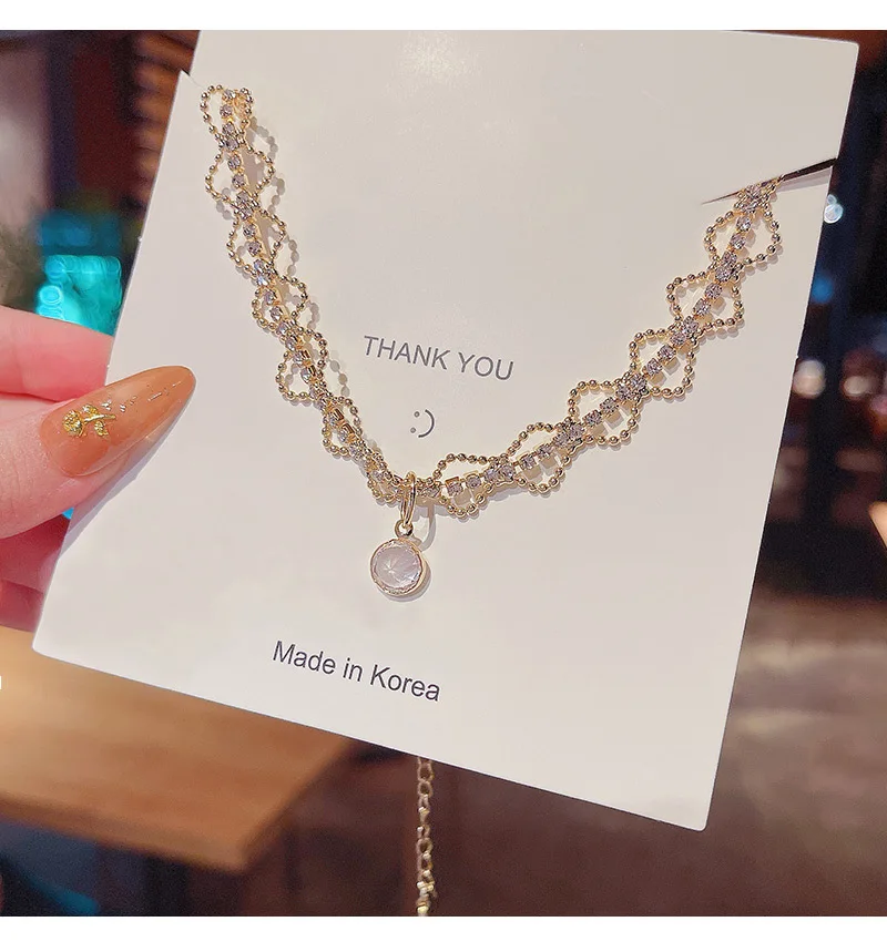 Bohemian style necklace women's flat chain collar necklace crystal zircon necklace collar fish bone airplane necklace