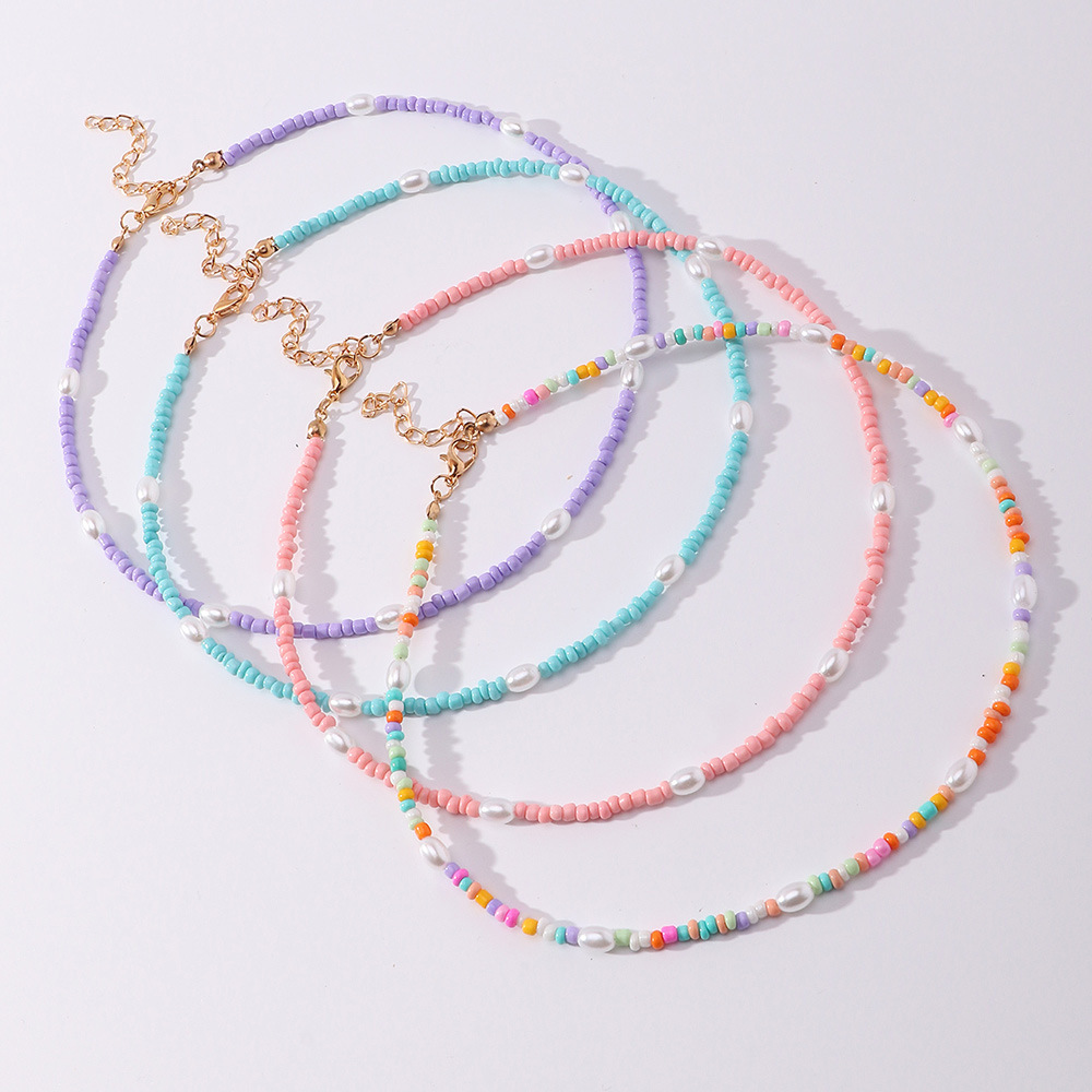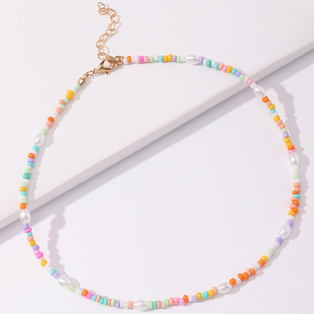 Boho Beads Choker Necklaces Womens Bohemia Colorful Measle Pearl Strand Alloy Geometric Necklaces Jewelry for Girls