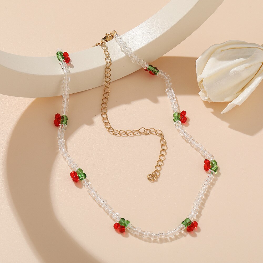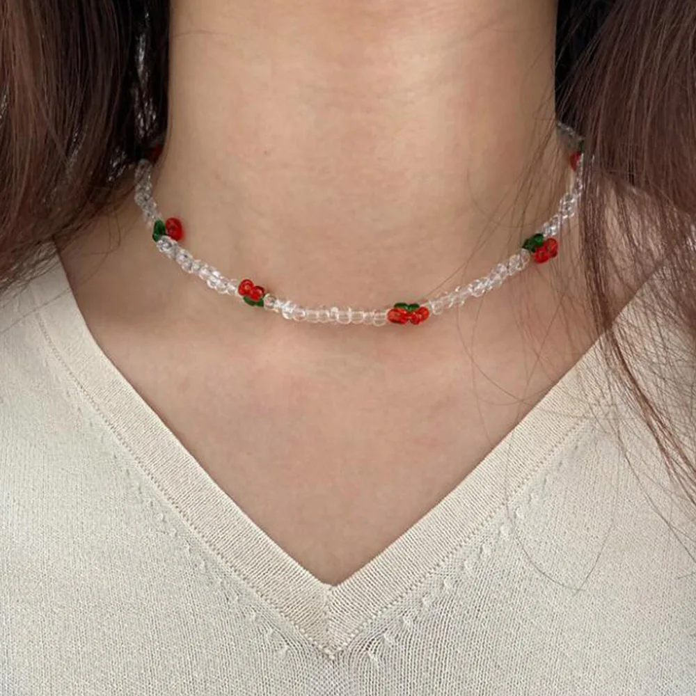 Bohoemian Transparent Beads Cherry Choker Necklaces For Women Girls Cute Short Resin Necklace Trendy Summer Jewelry