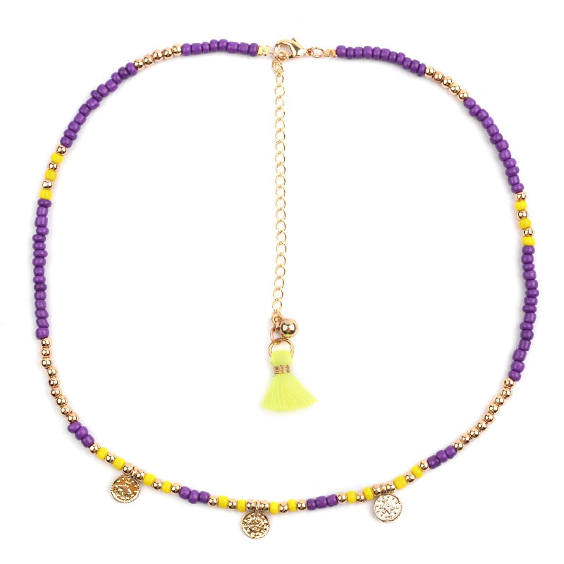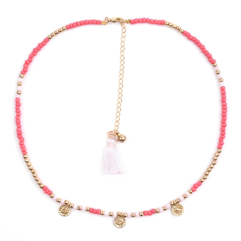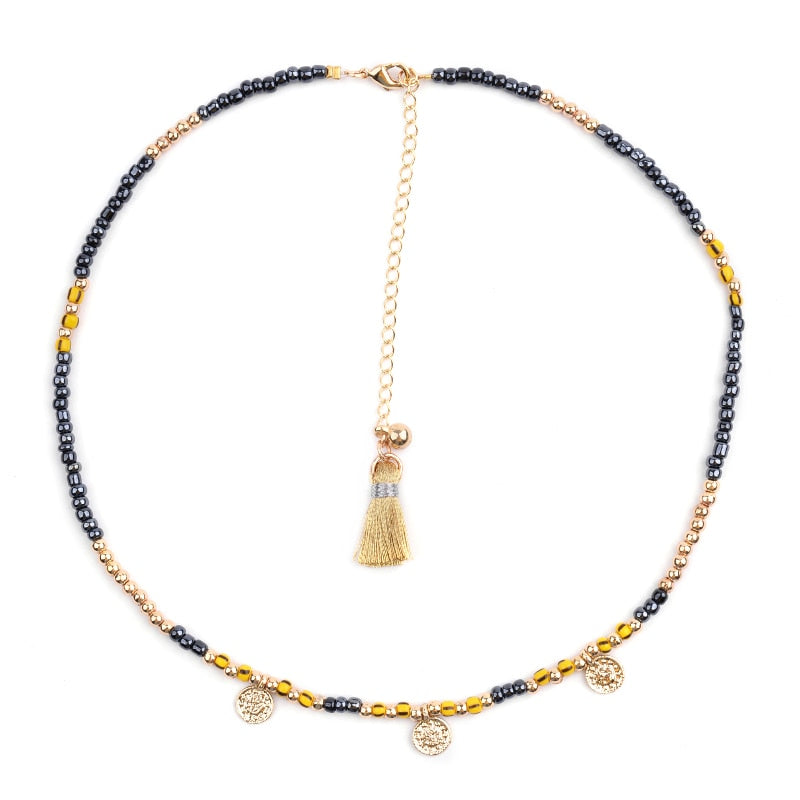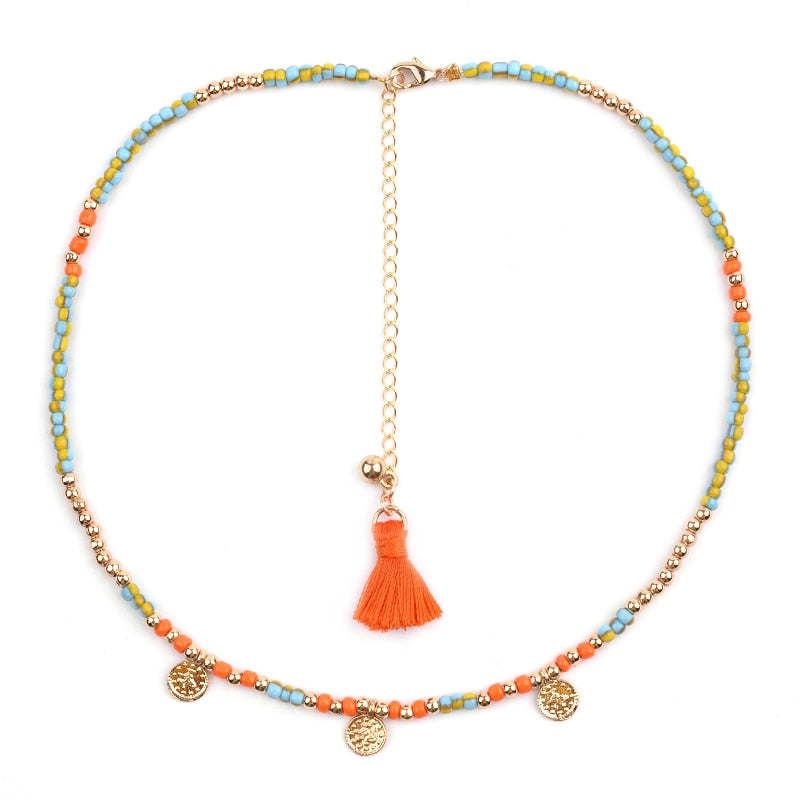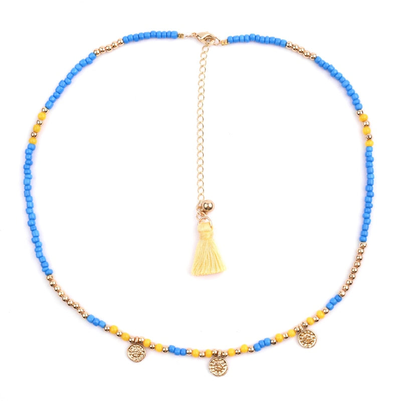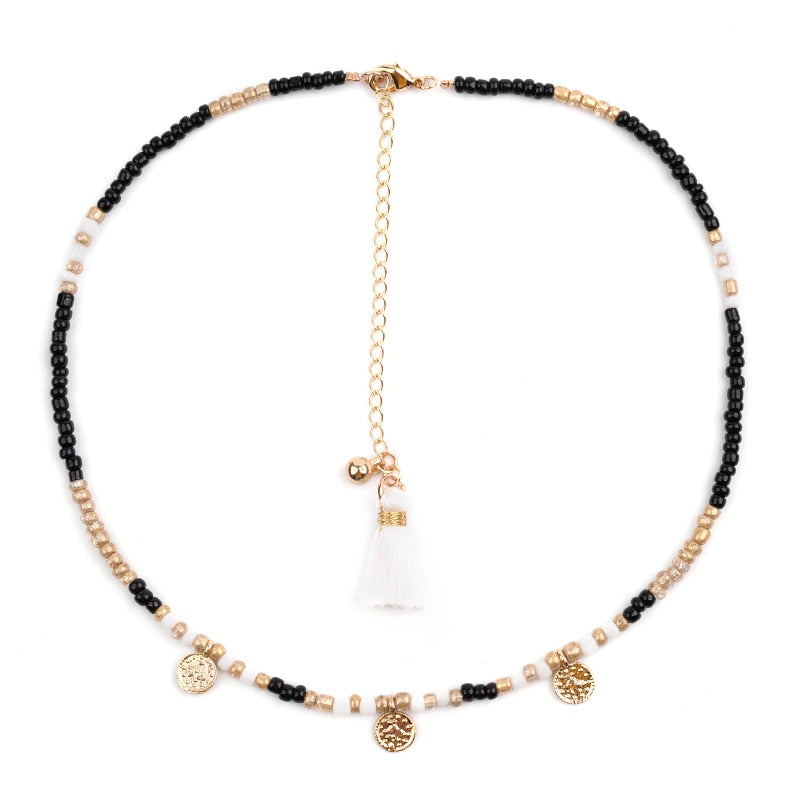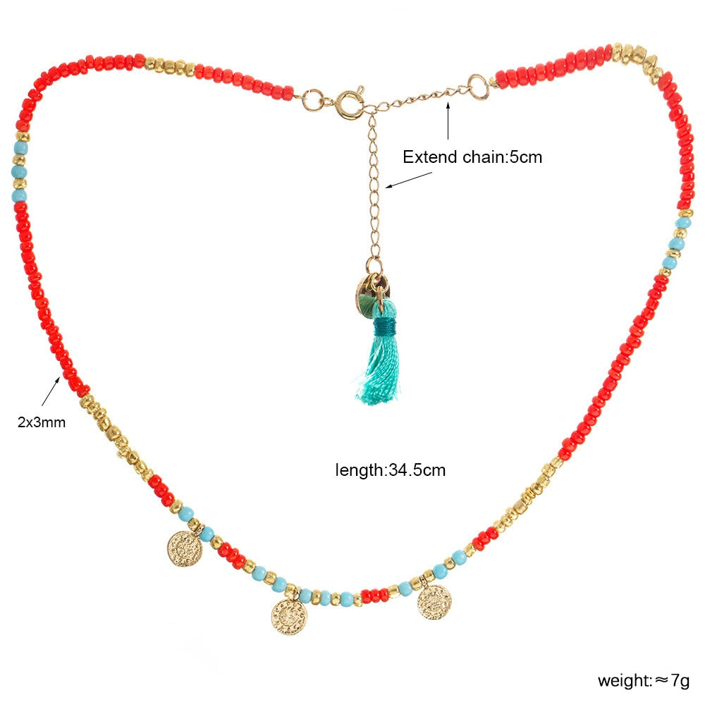 BOJIU Bohemian Short Collar Chokers Necklaces For Women Adjustable Bijou Ethnic Acrylic Beads Miyuki Statement Necklace NKS227