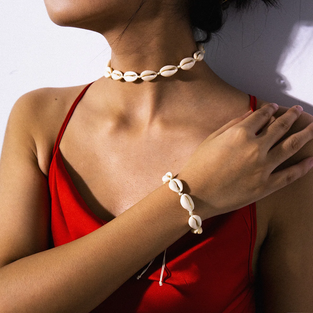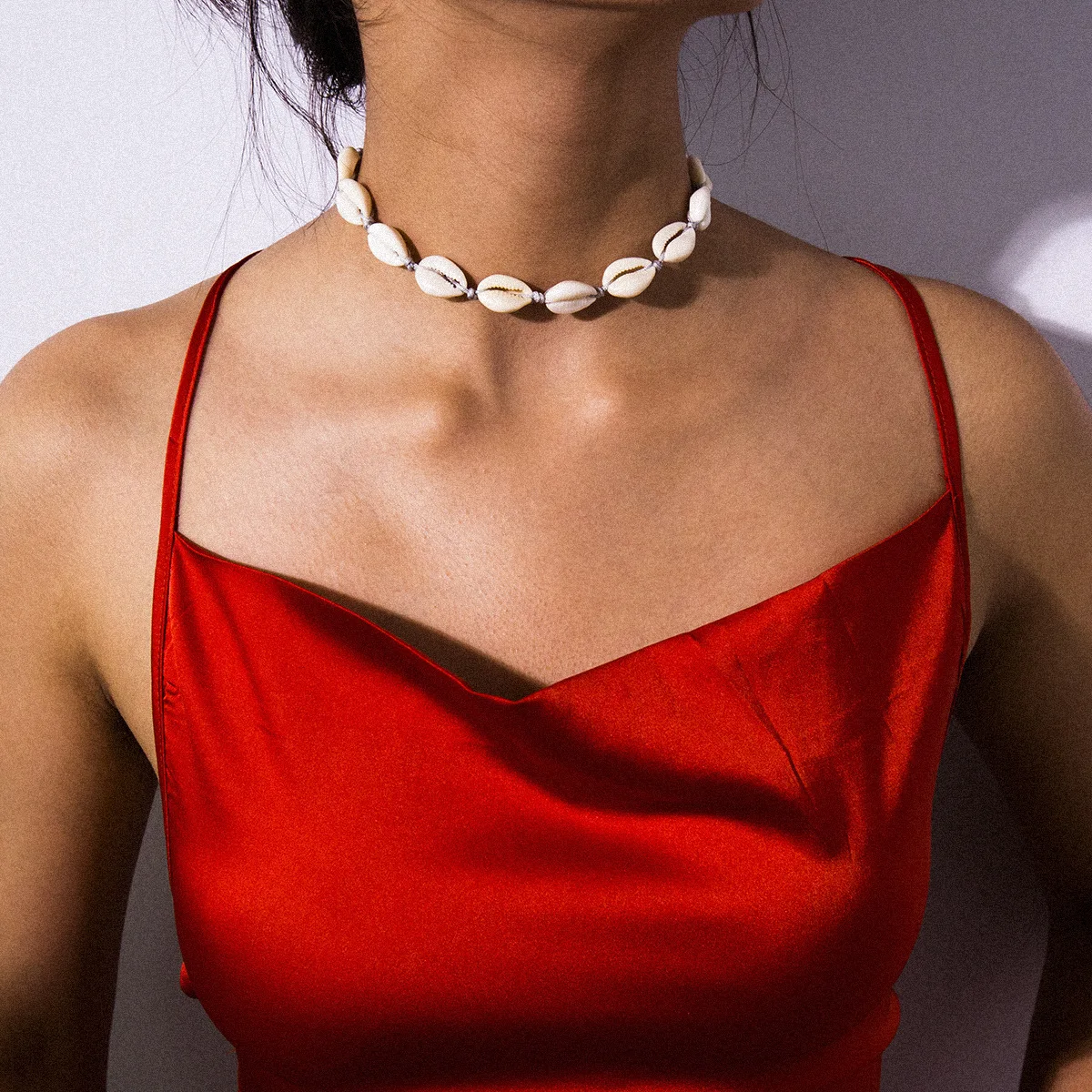 BONJEAN Hyperbole Shell Necklace for Women Geometric Neck Jewelry Braided Choker Necklace Ladies Adjustable Necklace BJ3085