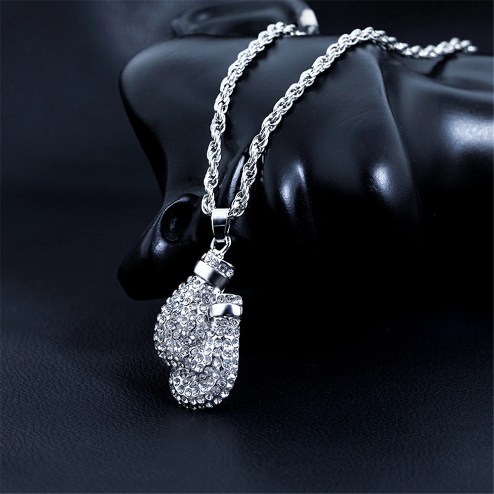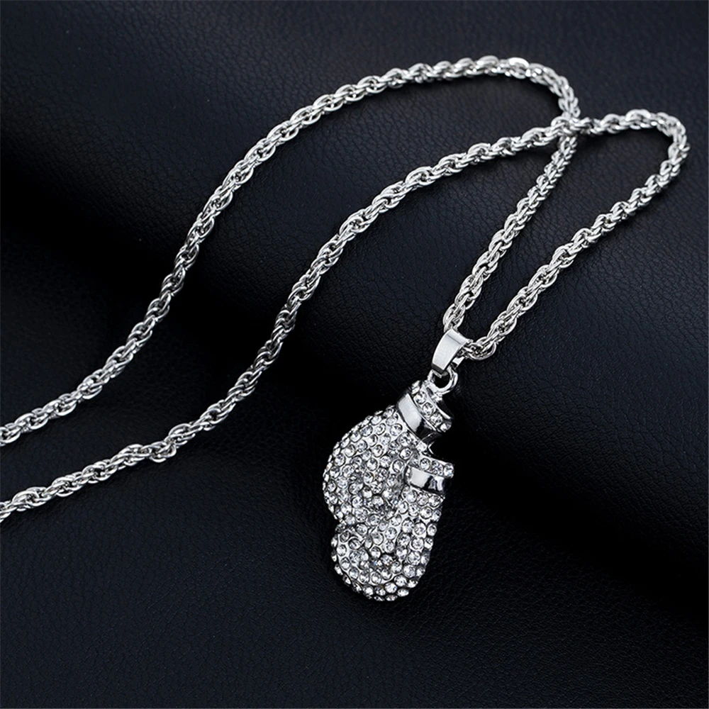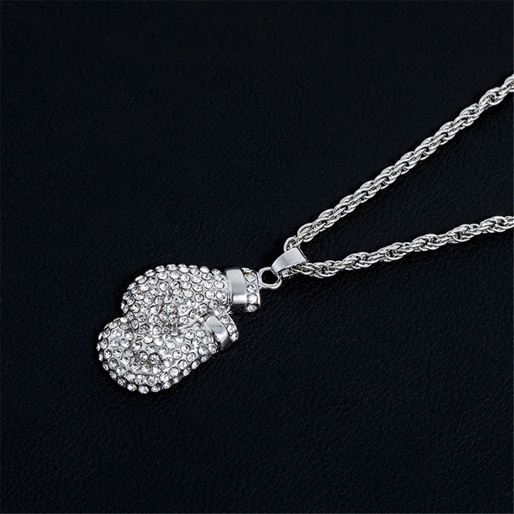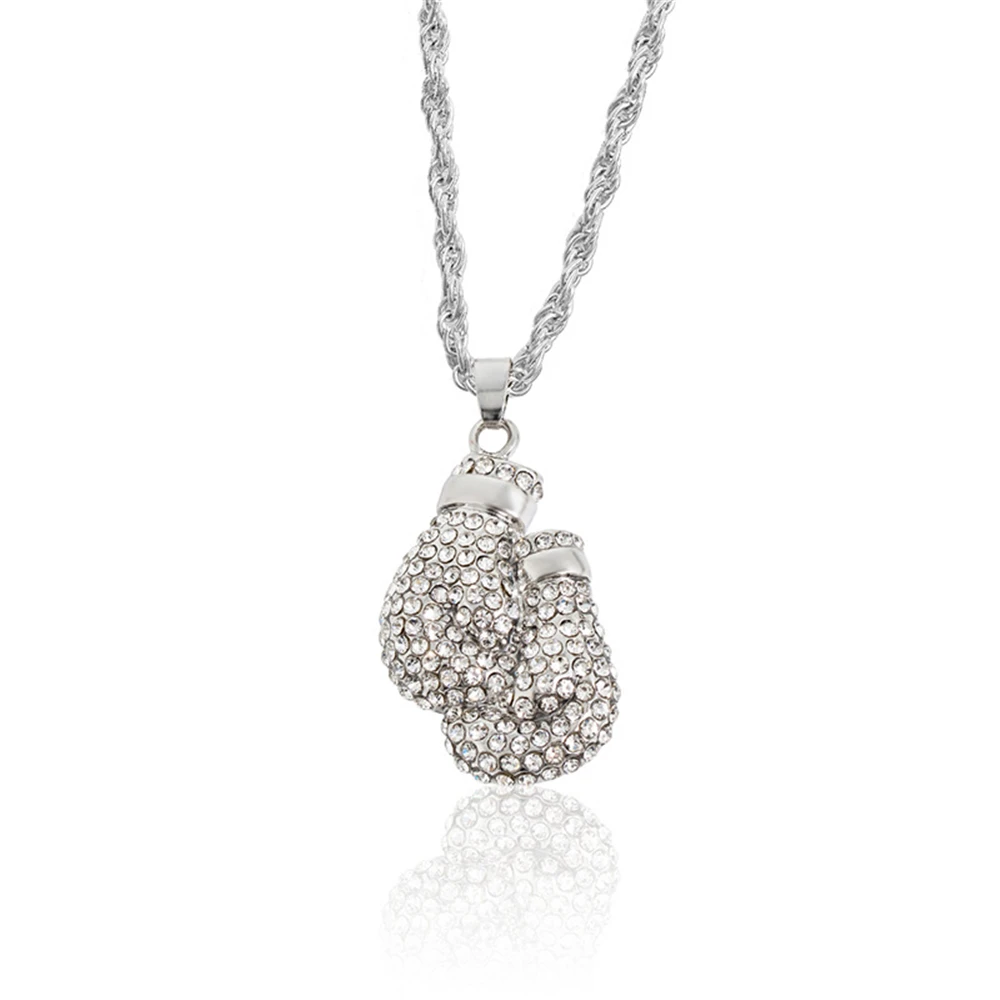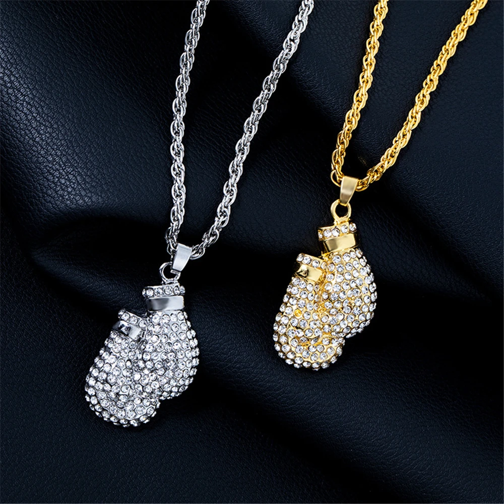 Boxing Gloves Pendant Necklace 24"Long Chain Gold Color Iced Cubic Zircon Alloy Necklace Pendant For Unisex Hip Hop Gift