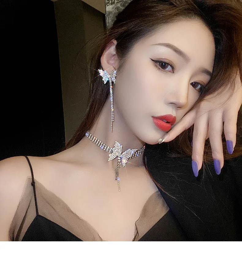 Butterfly Tassel Long Cool Wind Necklace Women's 2021 Net Red Neck Chain Suit Clavicle Chain Choker Necklace