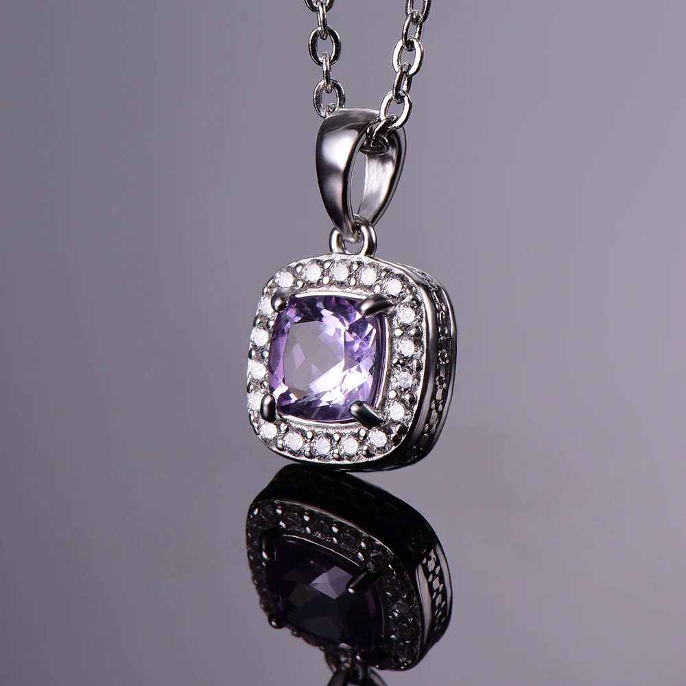 Natural 0.88ct Amethyst Pendant Necklace Genuine Solid 925 Sterling Silver Purple Jewelry Pendants for women
