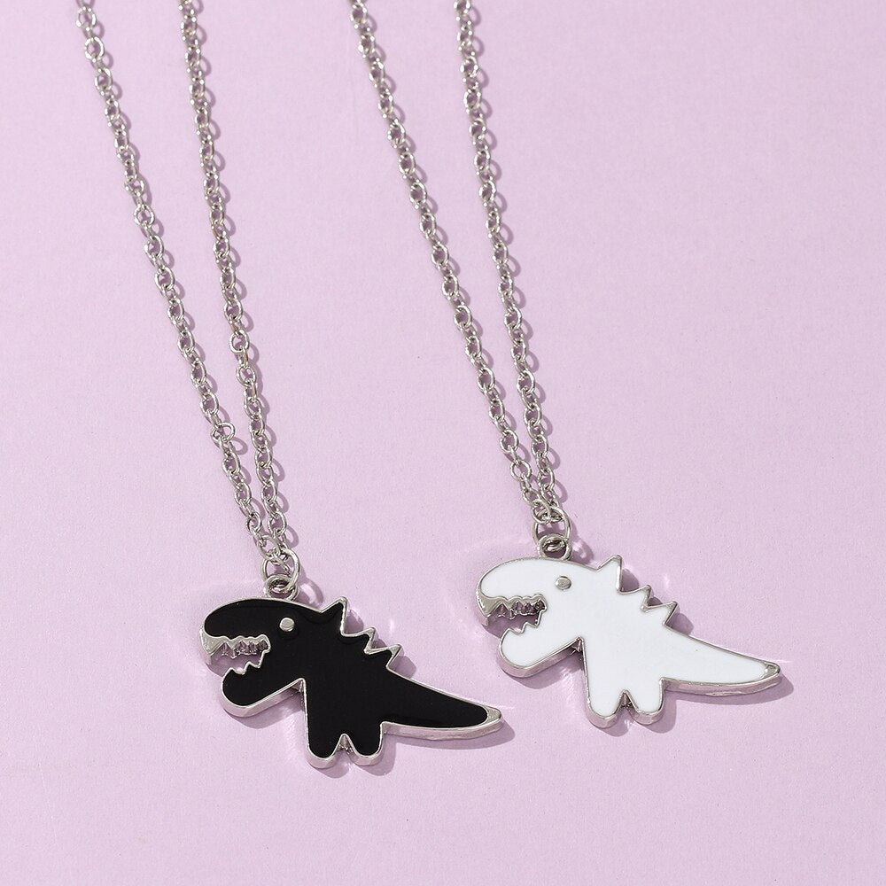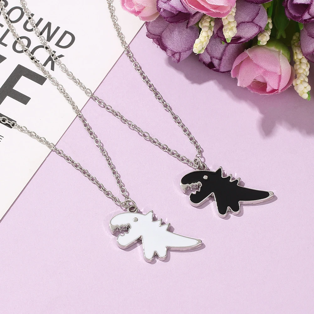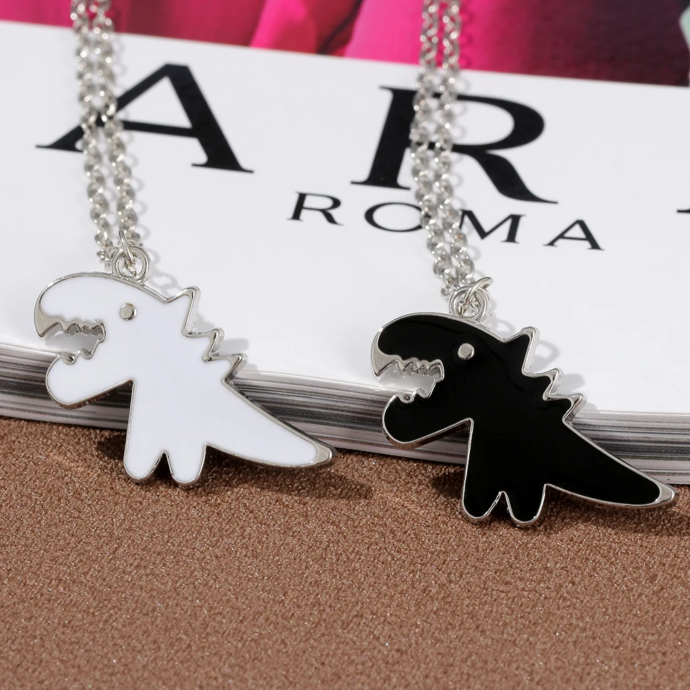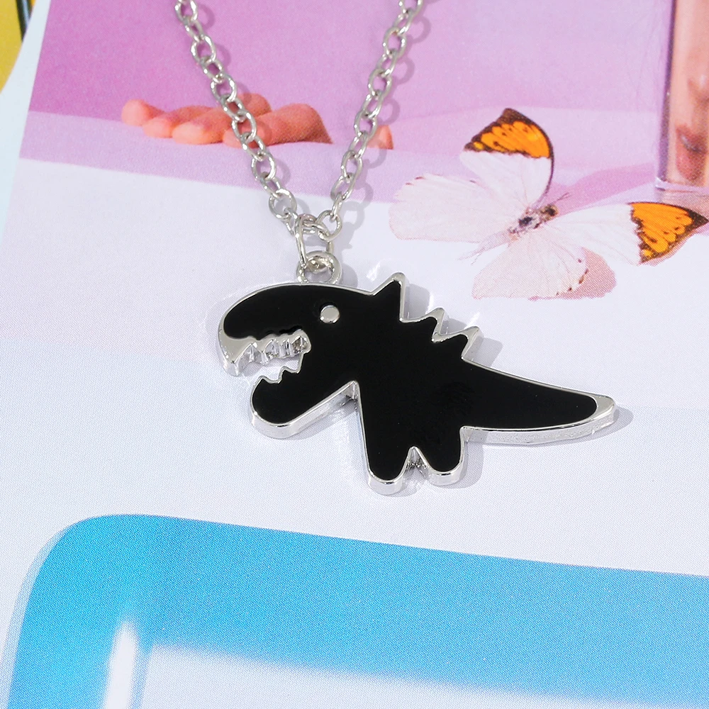 Cartoon Dinosaur Pendant Necklace for Women Men Alloy Chains on The Neck Hip Hop Couple Chain Necklaces A Pair Jewelry