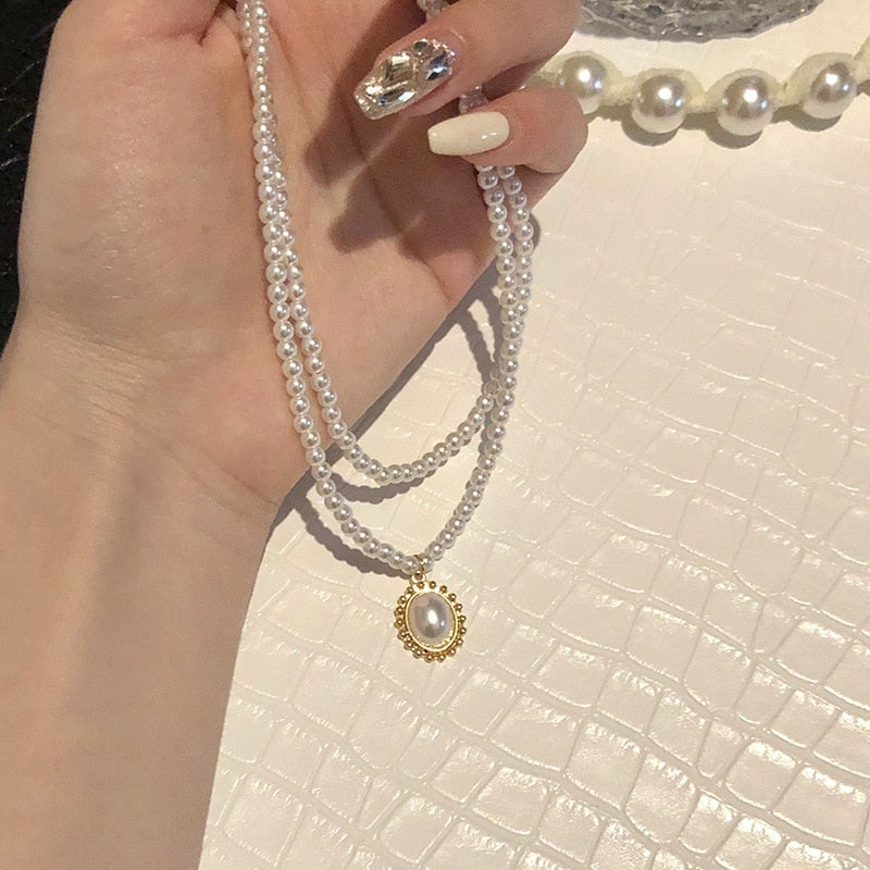 Chain Pearl Necklace For Women Baroque Pearl Metal Charm Pendants Necklaces Choker Bead Chain Jewelry Gifts
