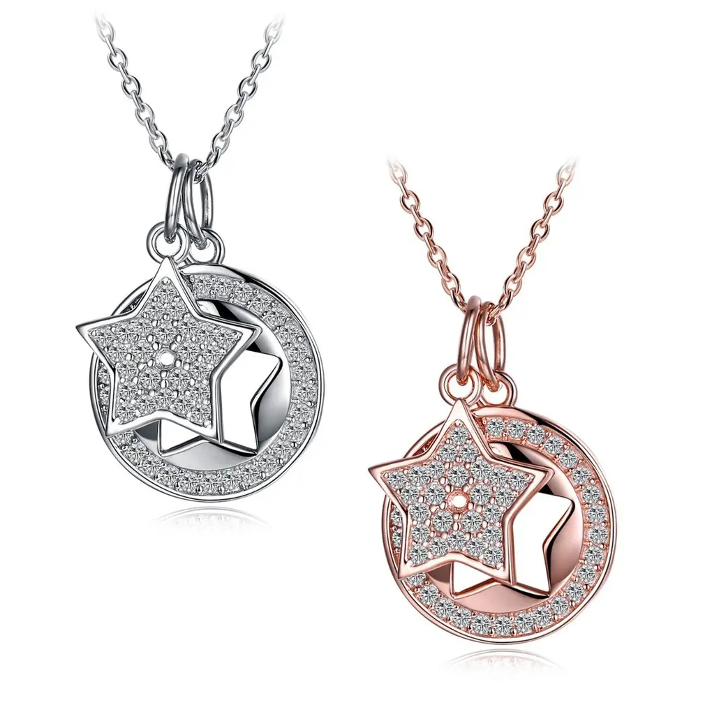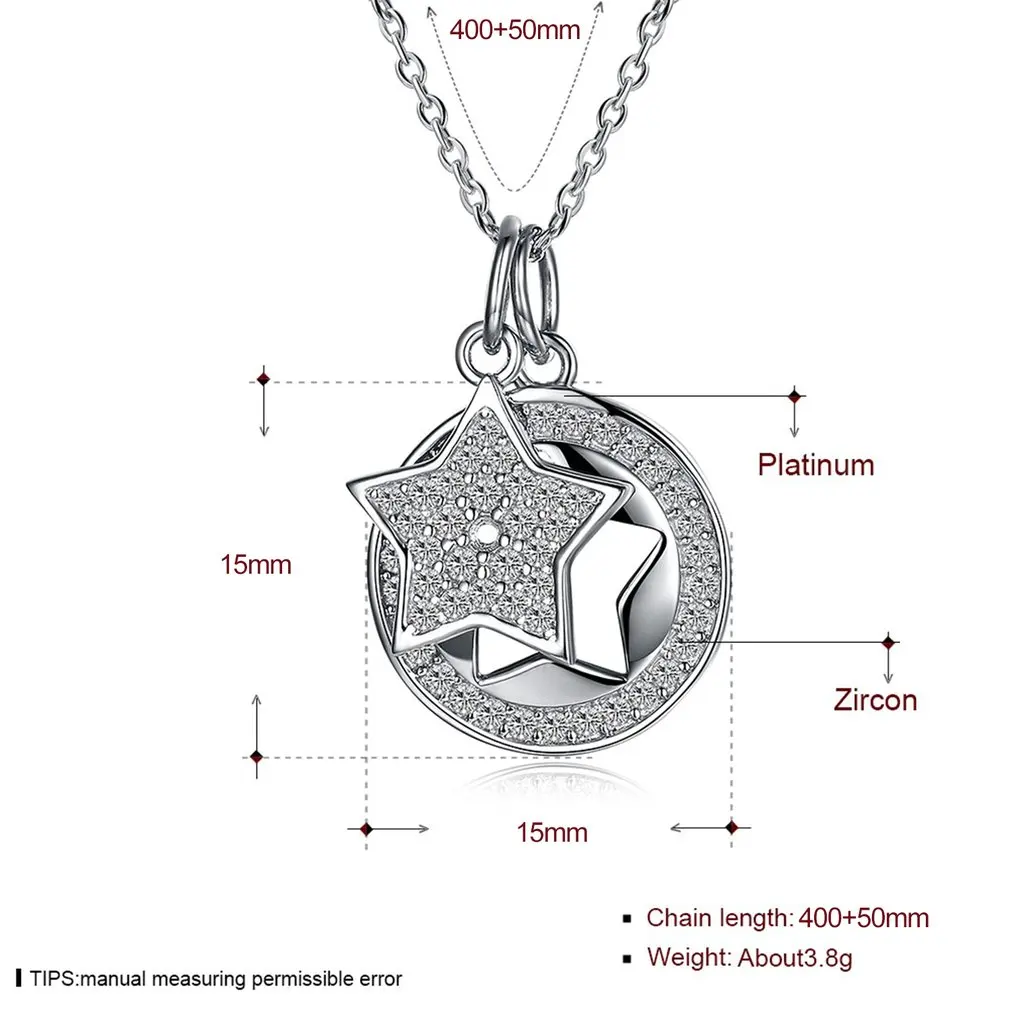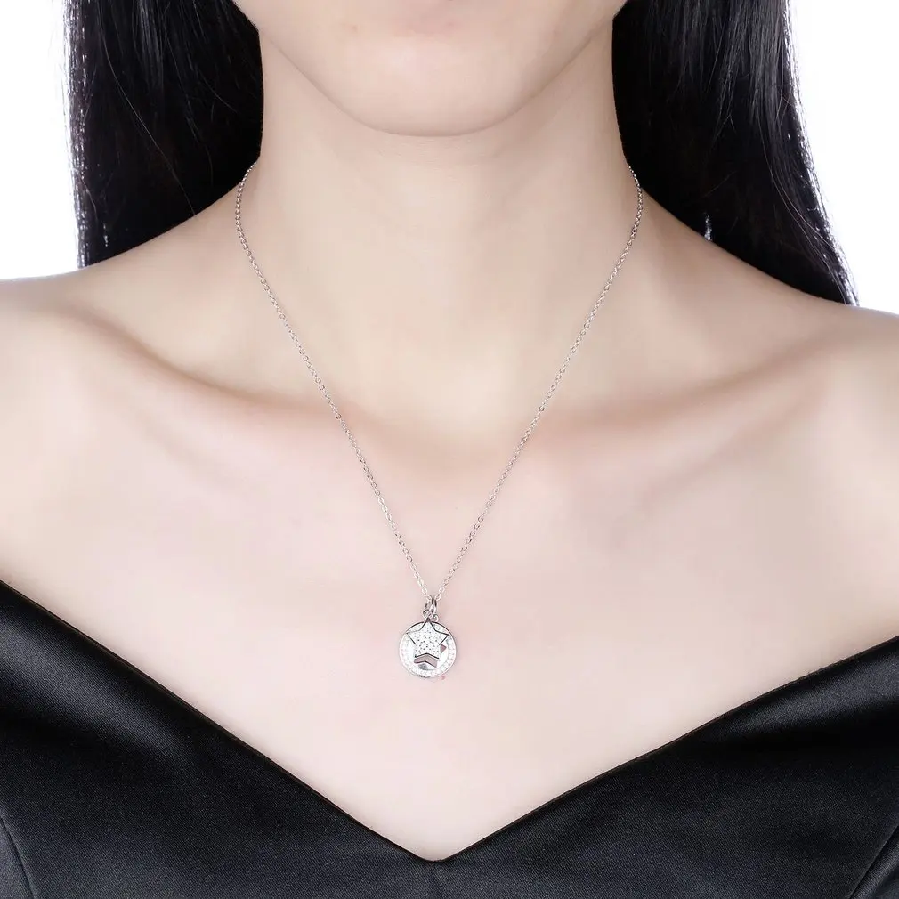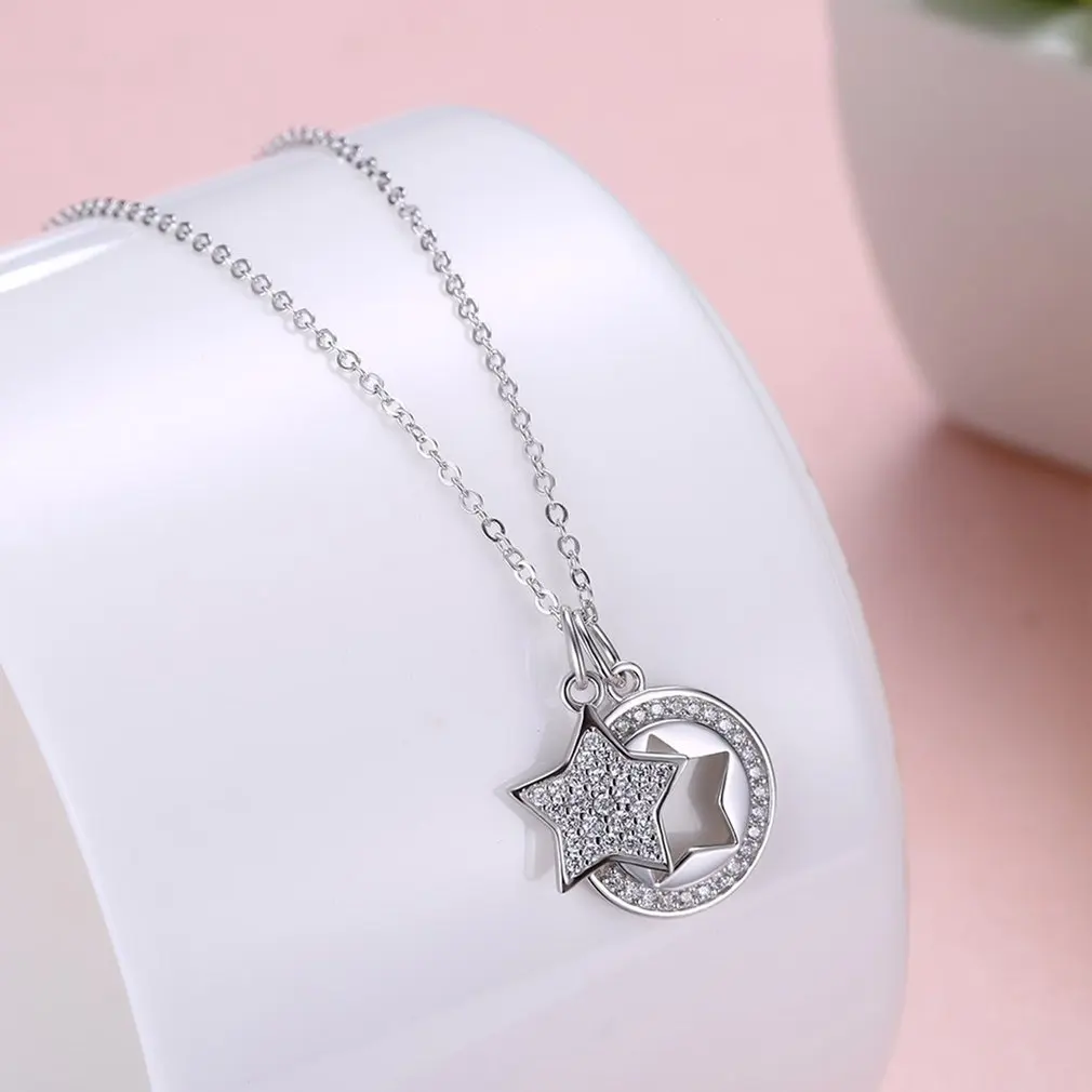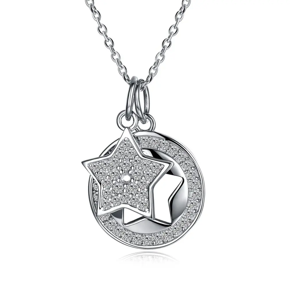 Charming S925 Sterling Silver Shiny Zircon Stars Shape Pendant Fine Jewelry Woman Link Chain Necklace For Wedding Party