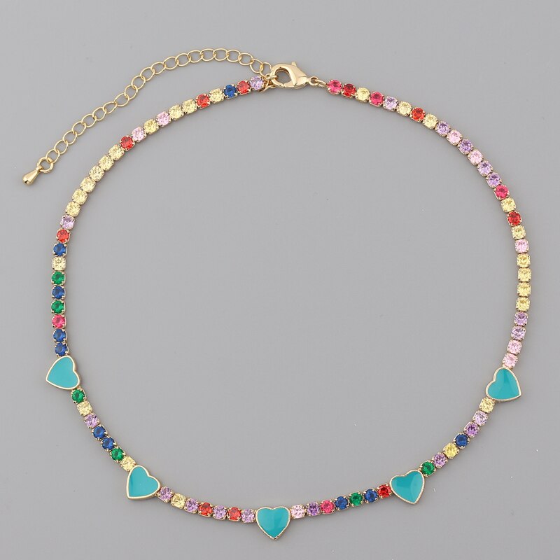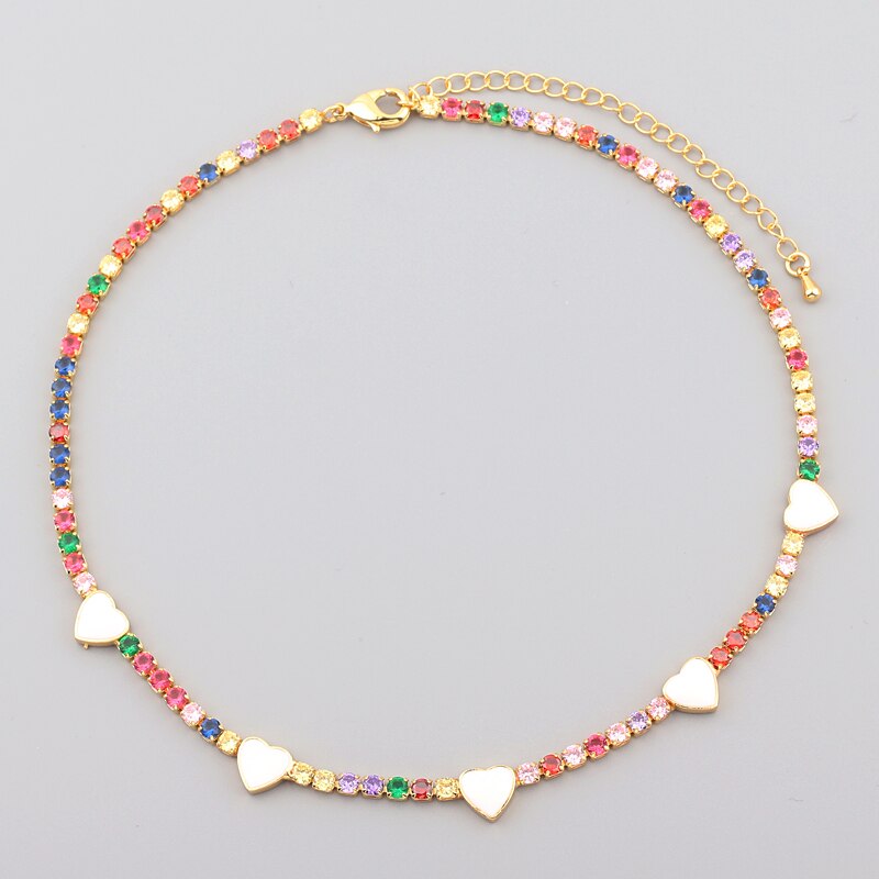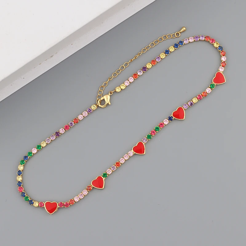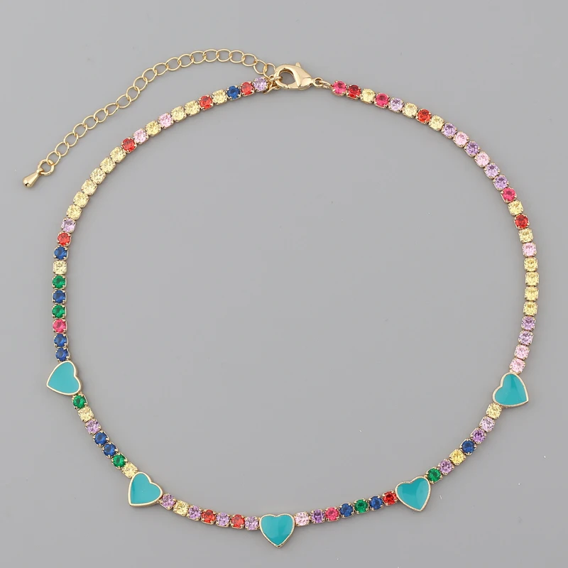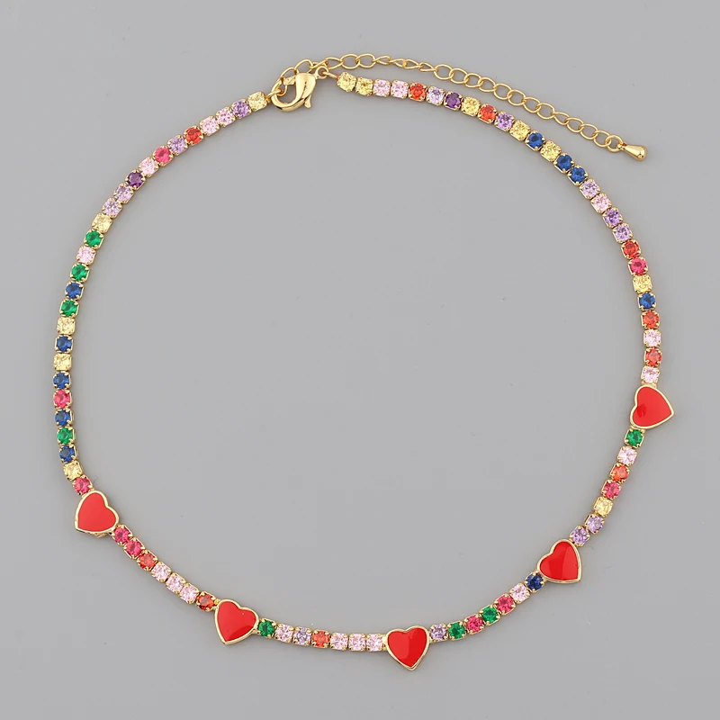 Charms Rainbow Enamel Heart Necklaces for Women Crystal Gold Micro Pave Chokers Necklaces CZ Cubic Zirconia Women Jewelry Gift