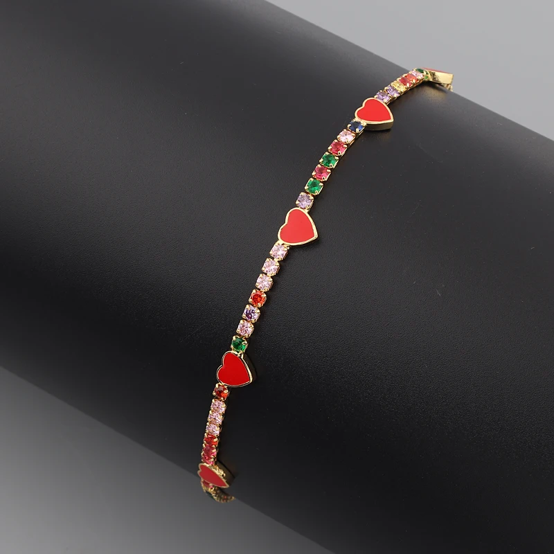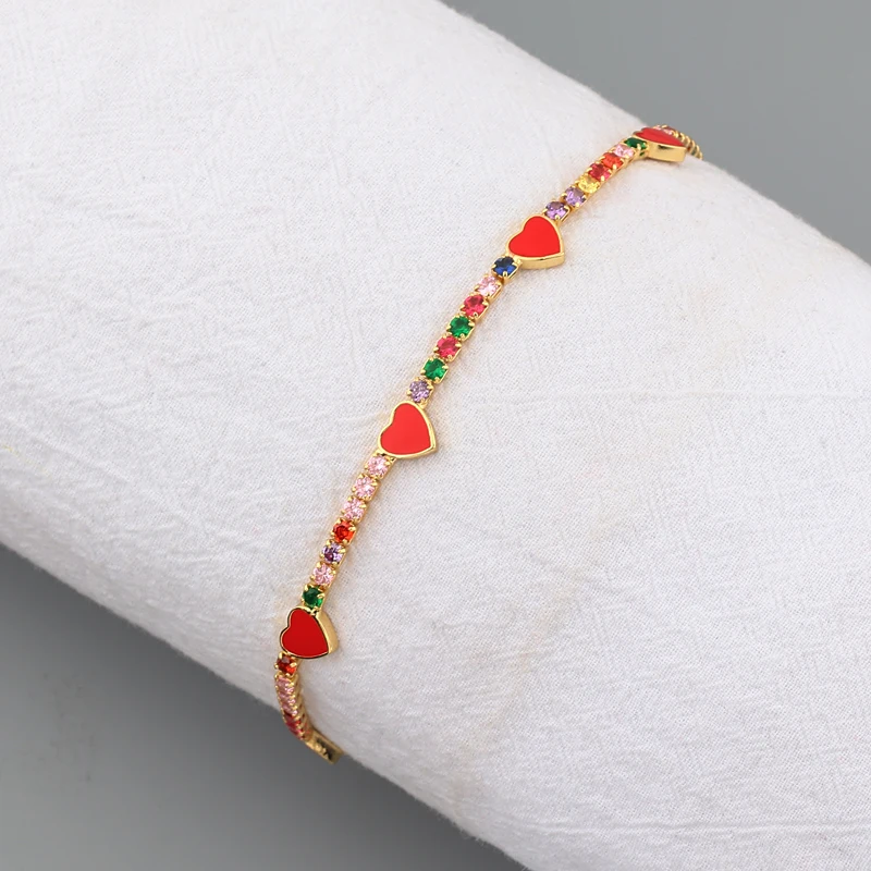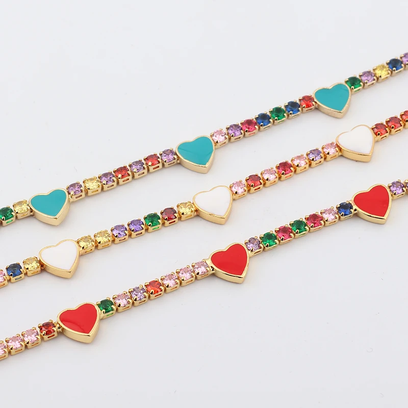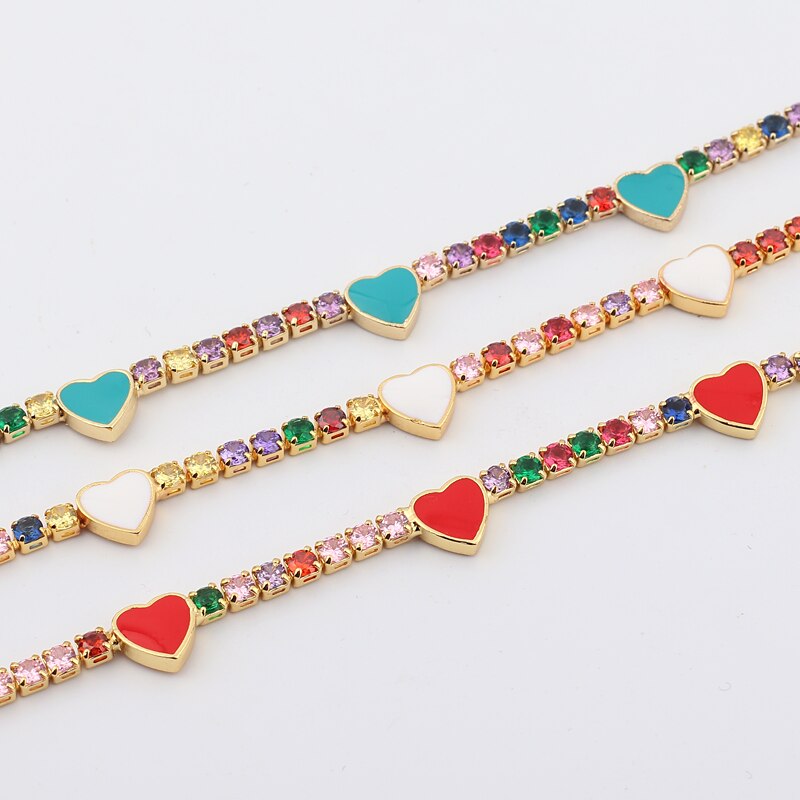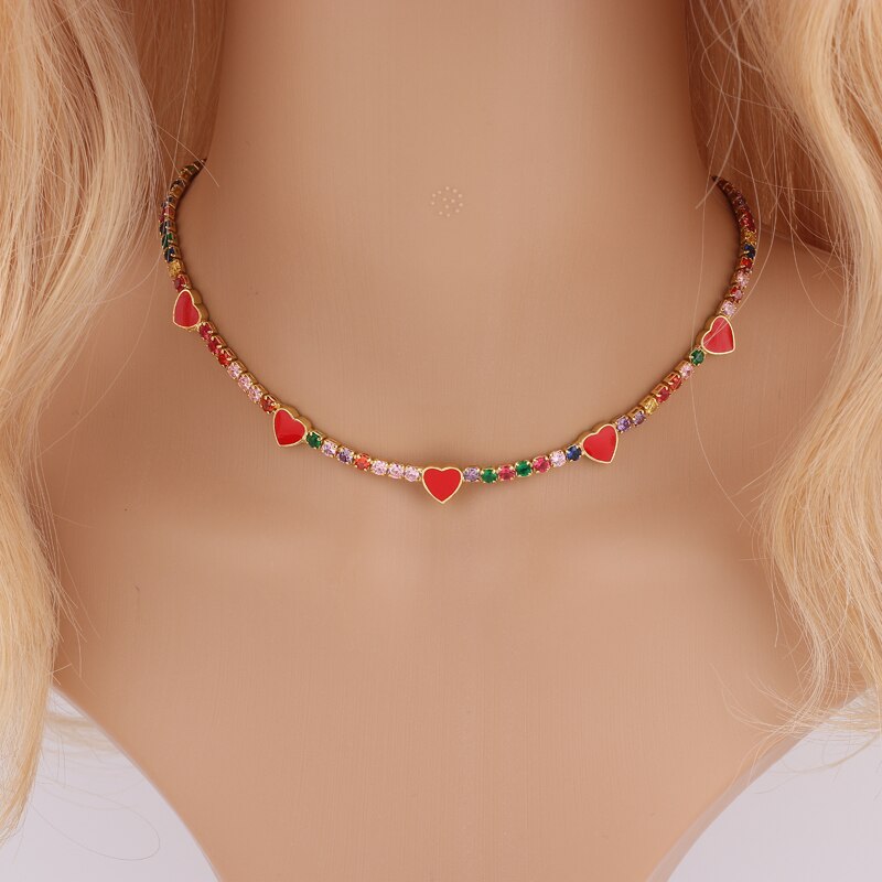 Charms Rainbow Enamel Heart Necklaces for Women Crystal Gold Micro Pave Chokers Necklaces CZ Cubic Zirconia Women Jewelry Gift