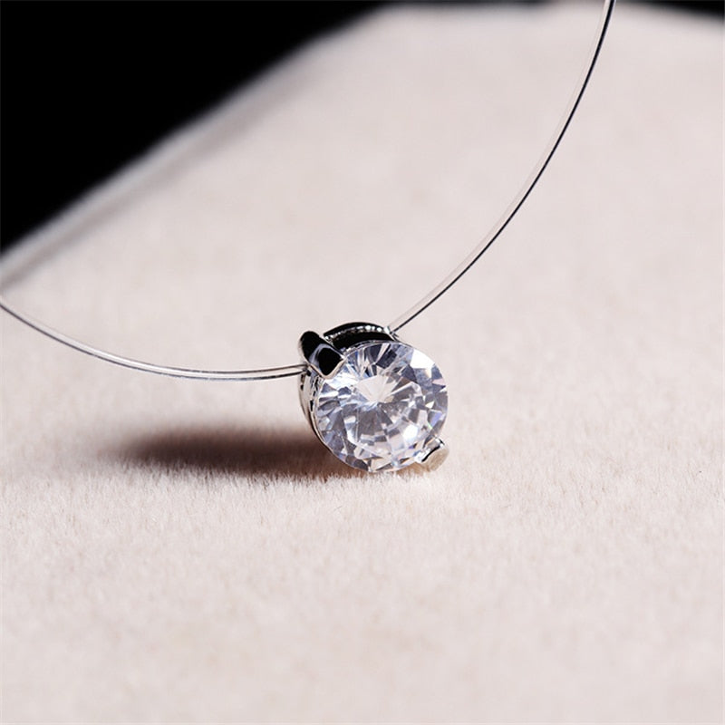 Choker Invisible Fish Line Crystal Necklace Pendants Neck Zircon Women Clavicle Chain Lady Feminino Collar