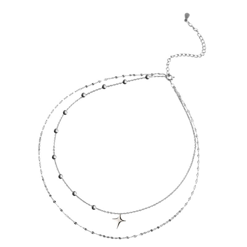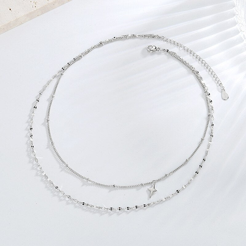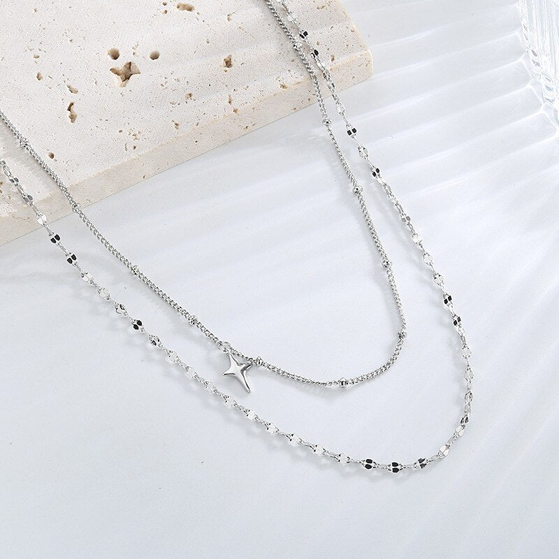 CIAXY 925 Sterling Silver Cross Star Sequin Necklaces for Women Temperament Double-layer Clavicle Chain Choker Punk Jewelry