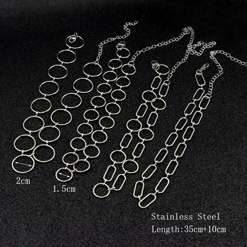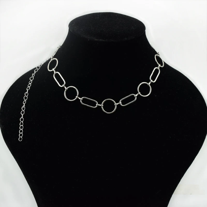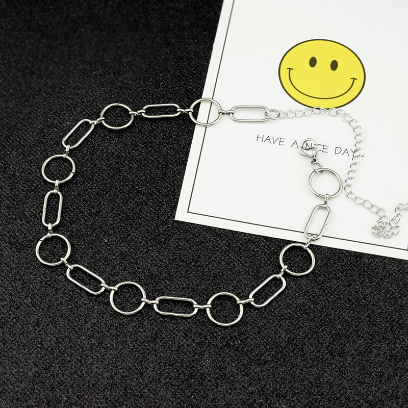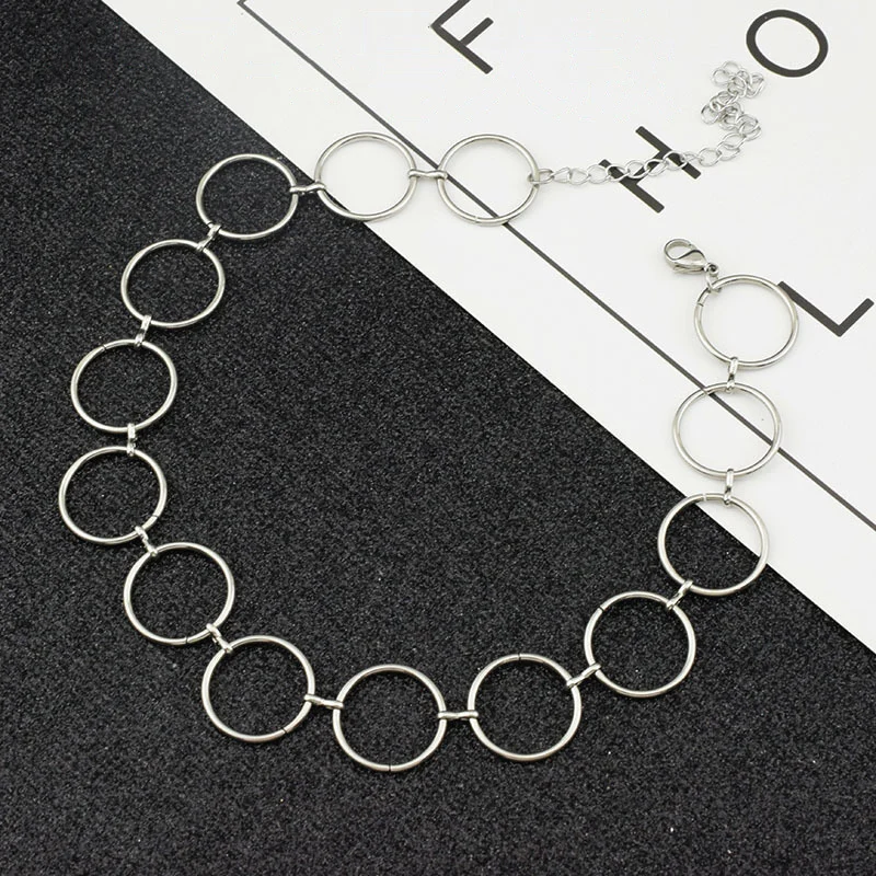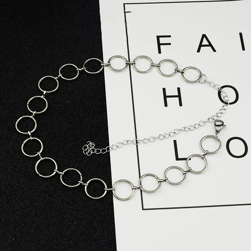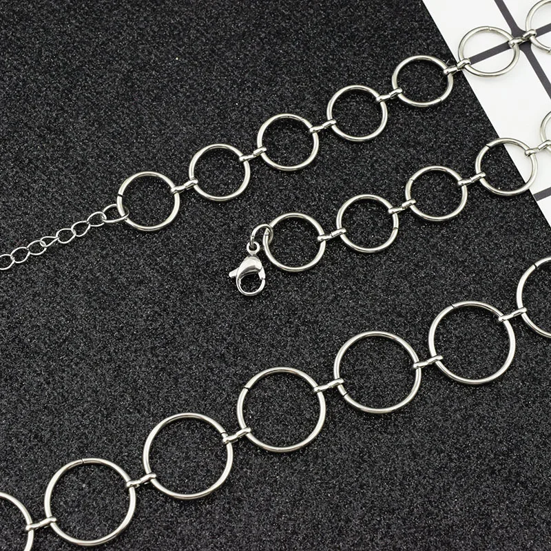 Circle Chain Choker Necklace Stainless Steel Rectangle Chain Link Chunky Necklace Hip Hop Jewelry Ins Statement Silver Color