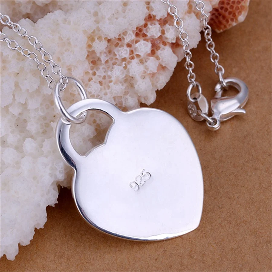classic 925 Stamped Silver streetwear heart card Pendant Necklace for women Couple gifts party wedding Jewelry