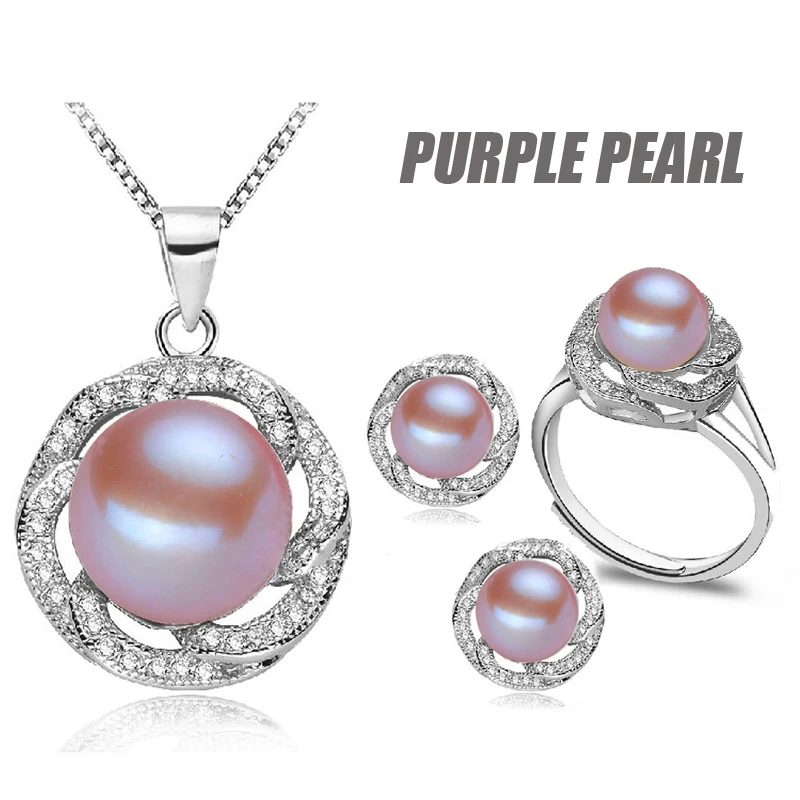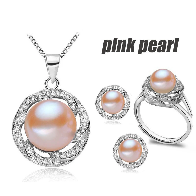 Classic pearl jewelry sets women, real natural pearl sets jewelry 925 silver mother trendy pendant ring earring