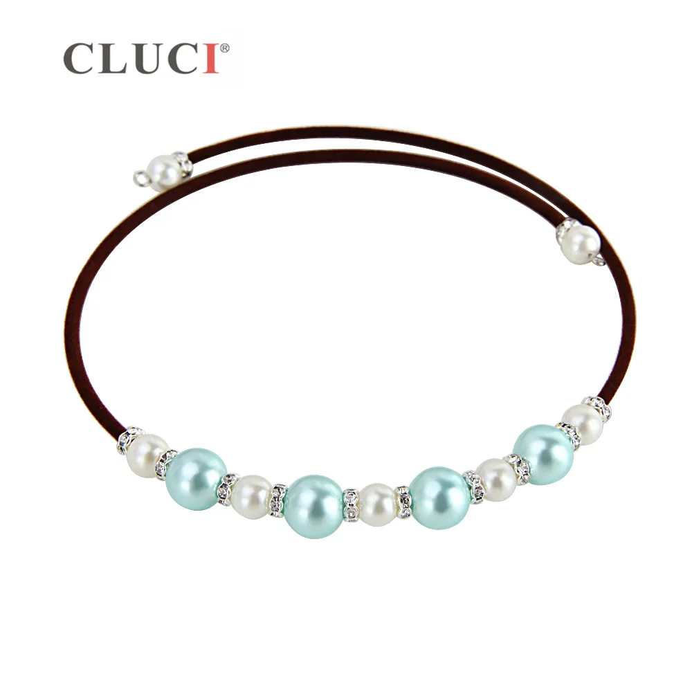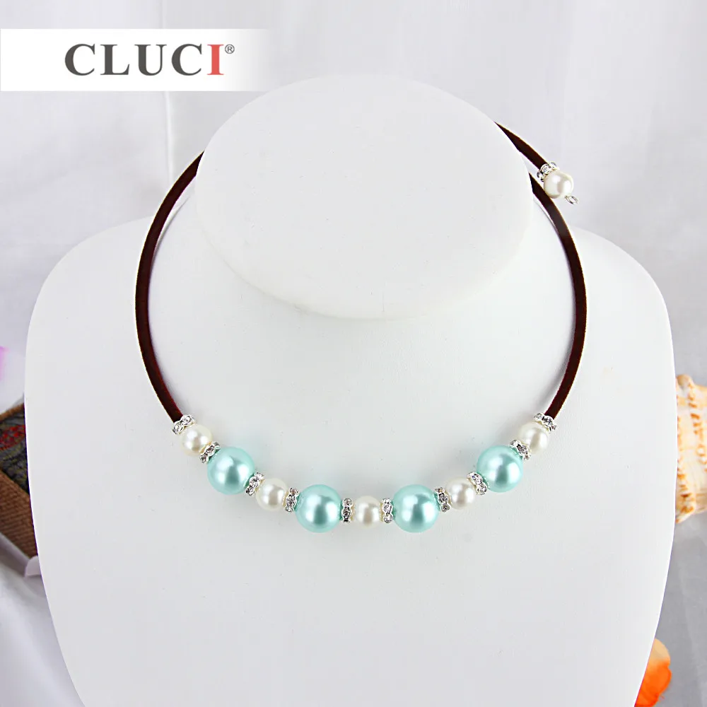 3pcs Necklaces Black/Brown Rope Chain String baby blue Shell Pearls Zirconia Collar Choker Adjustable Necklaces & Pendants