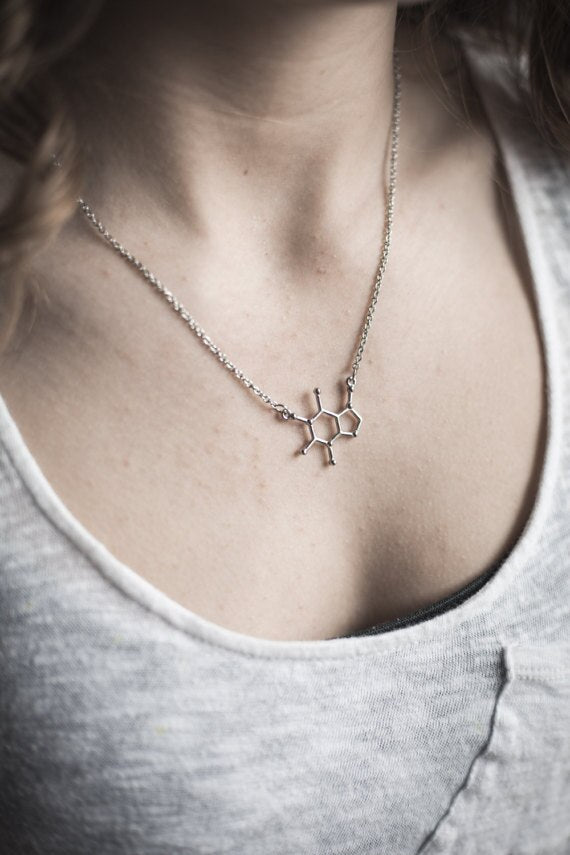 Coffee Caffeine Molecule Necklaces Science Structure Chemistry Molecules Geometry Polygonal Hexagon Hollow Pendant Necklace