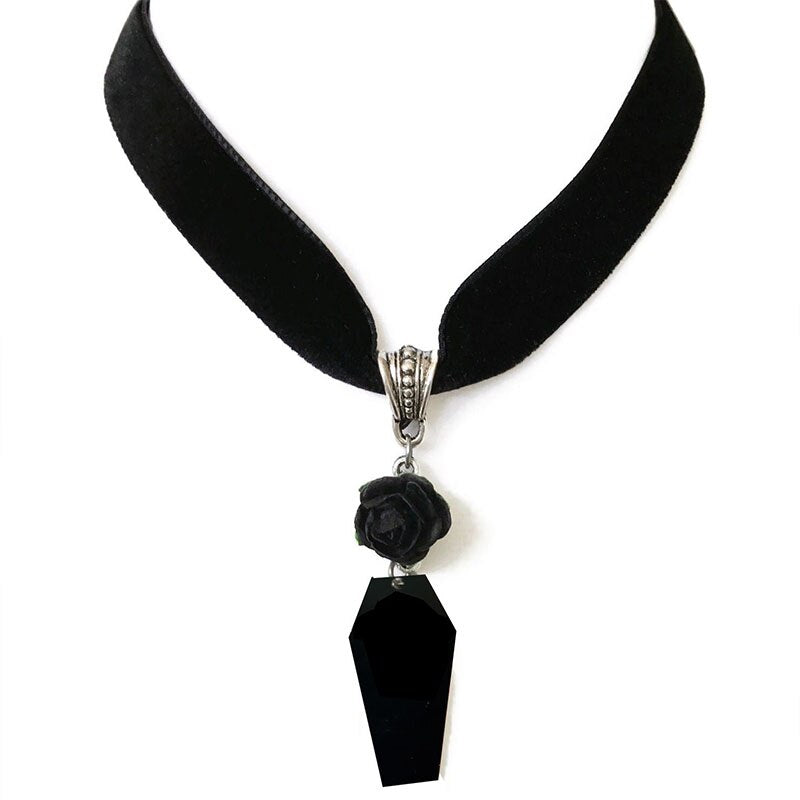 Coffin Choker Necklace, Black Rose, Black Velvet, Gothic Victorian, Alternative Jewelry