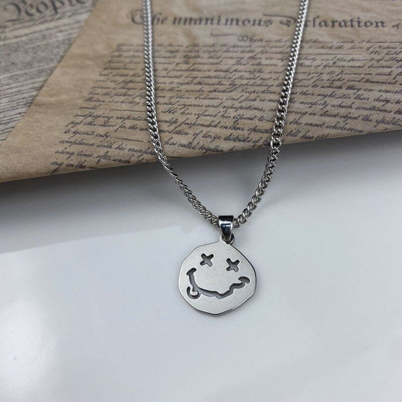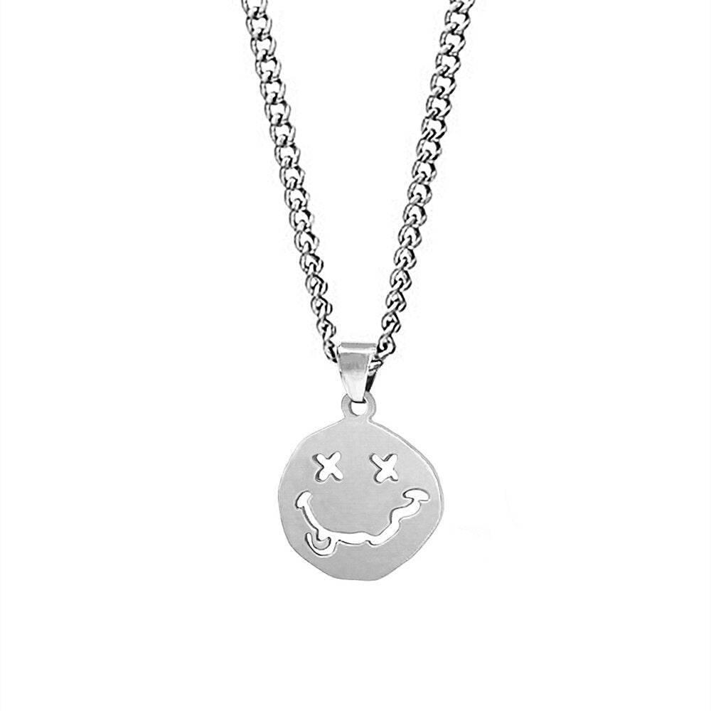 Colgante para el cuello con cara sonriente para hombre y mujer, Collar gótico de cadena larga, joyería para parejas, ropa de calle Guay, Collar Kpop para niña 2021
