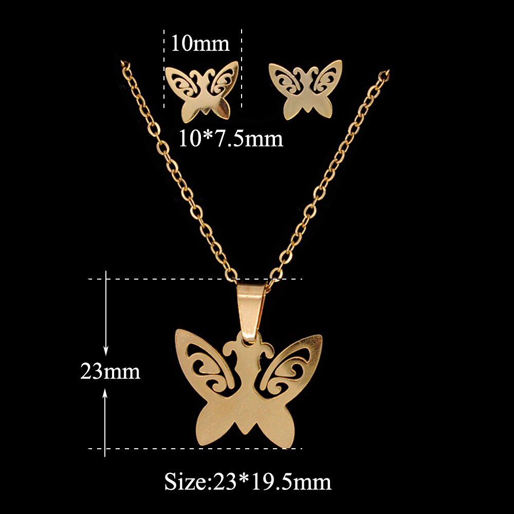 Collar relleno de oro Set acero inoxidable pulido de espejo Cruz de alta calidad, estrella de David corazón Lightning Butterfly