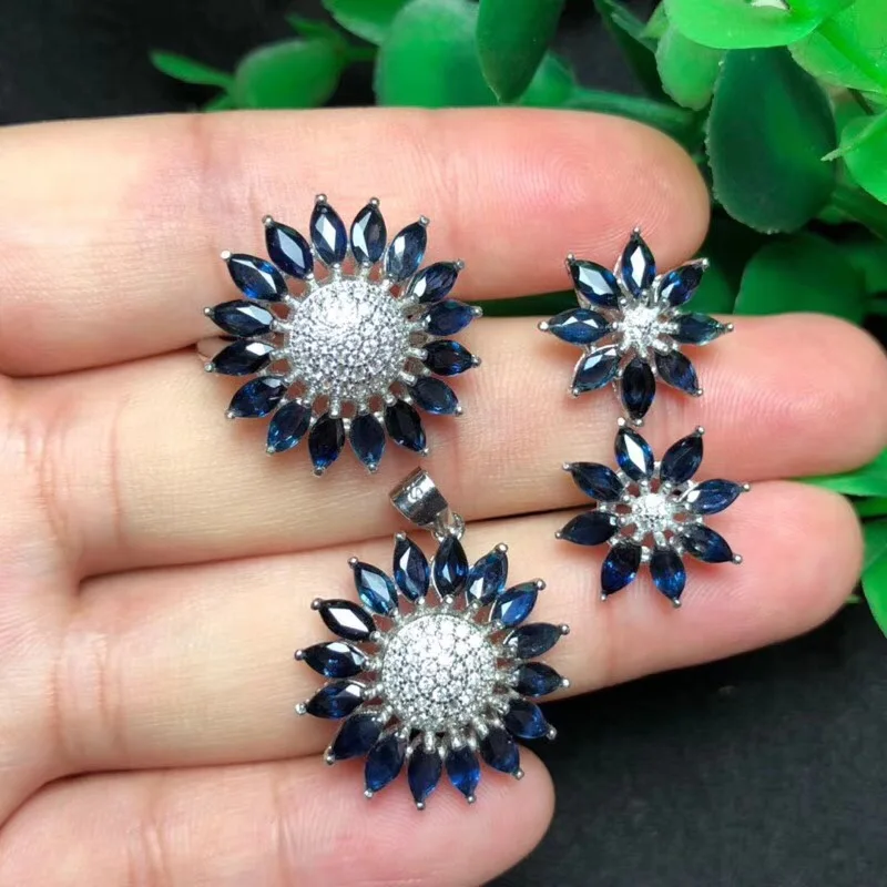 Columbia natural emerald set ring earrings necklace fashionable with new design quality 925 Silver