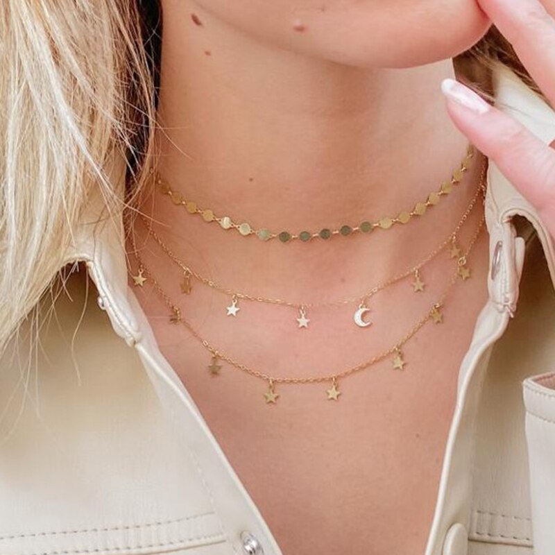 Copper Moon Star Eye Cross Pendant Necklaces for Ladies Friend Birthday Gift Multilayer Chain Necklace Colgante Collares