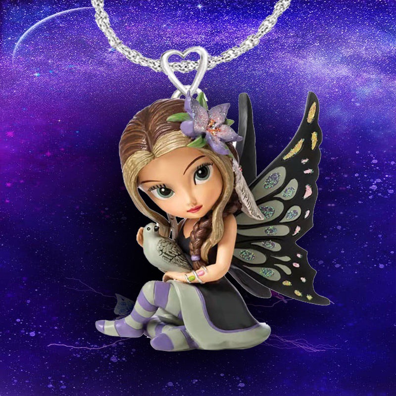 Creative Cartoon Holding Dove Girl Resin Pendant Necklace for Women Elegant Butterfly Wings Women Necklace Jewelry 2021