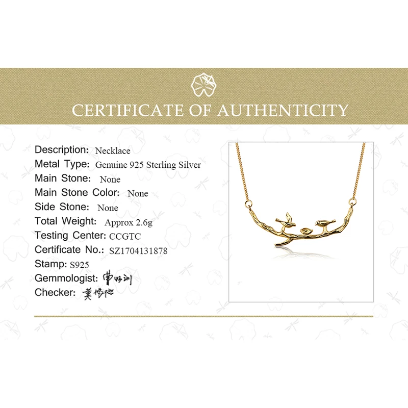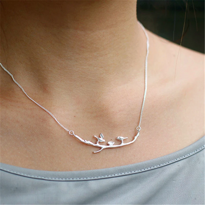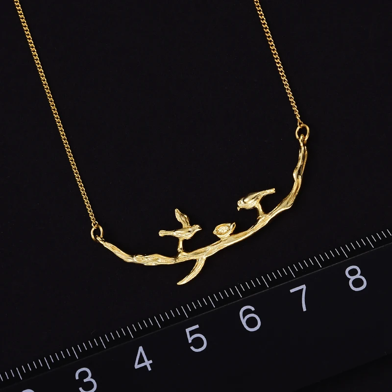 Real 925 Sterling Silver Handmade Designer Fine Jewelry Cute Bird on Branches Necklace with Pendant for Women Collier