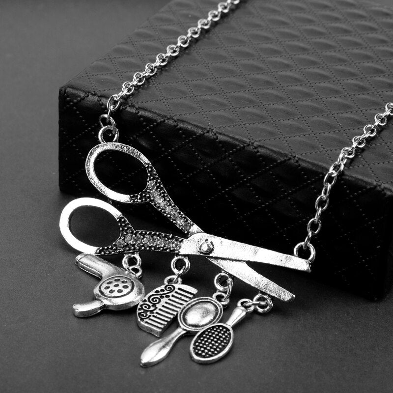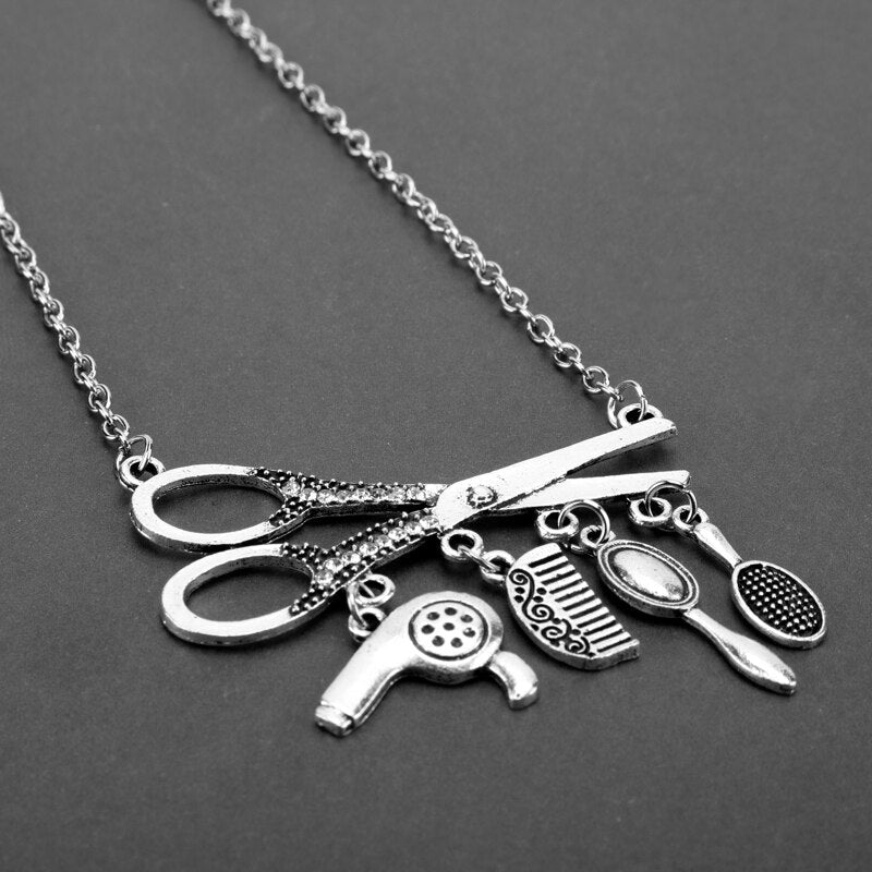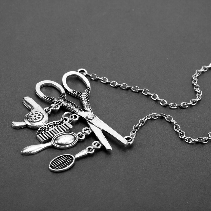Creative Jewelry Necklace Tools Hair Dryer/Scissor/Comb/Mirror Pendants Necklace Barber Shop Hair Dresser Present Necklace