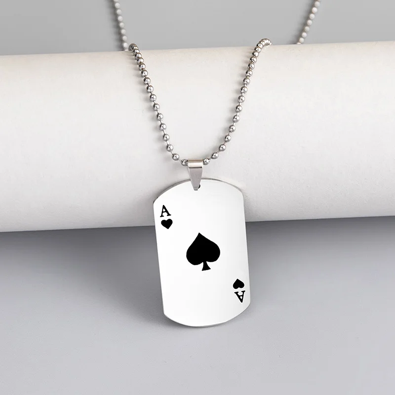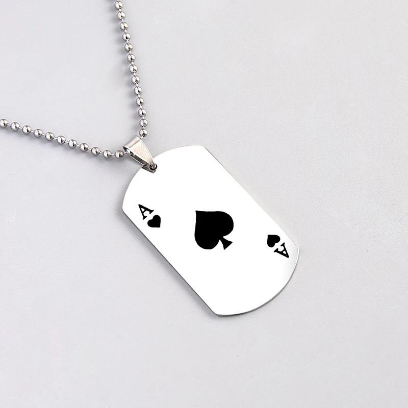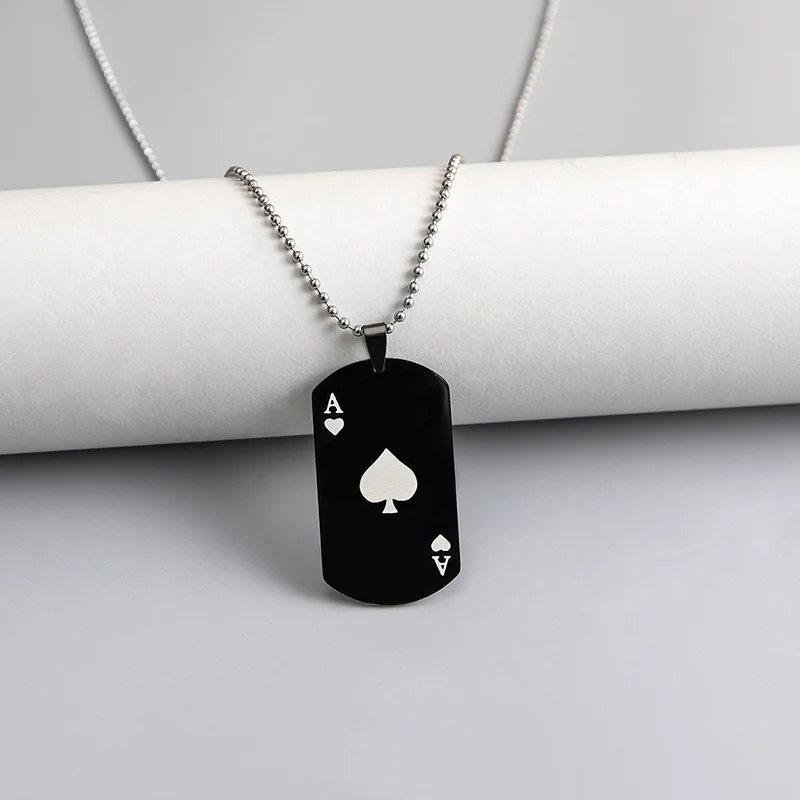 Creative Poker Ace of Spades Necklace Stainless Steel Playing Card Pendant Necklaces Hip Hop Jewelry