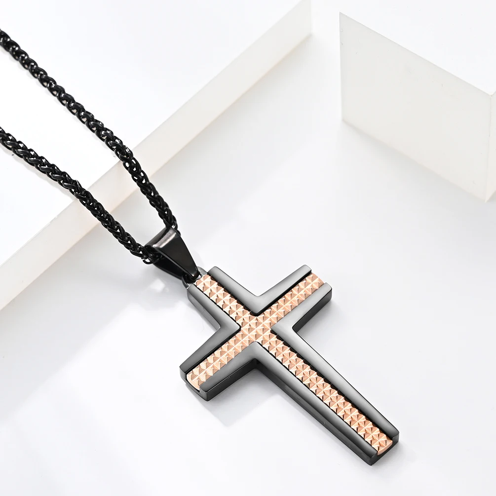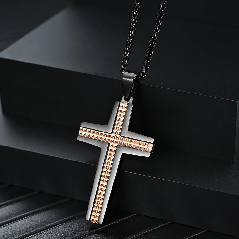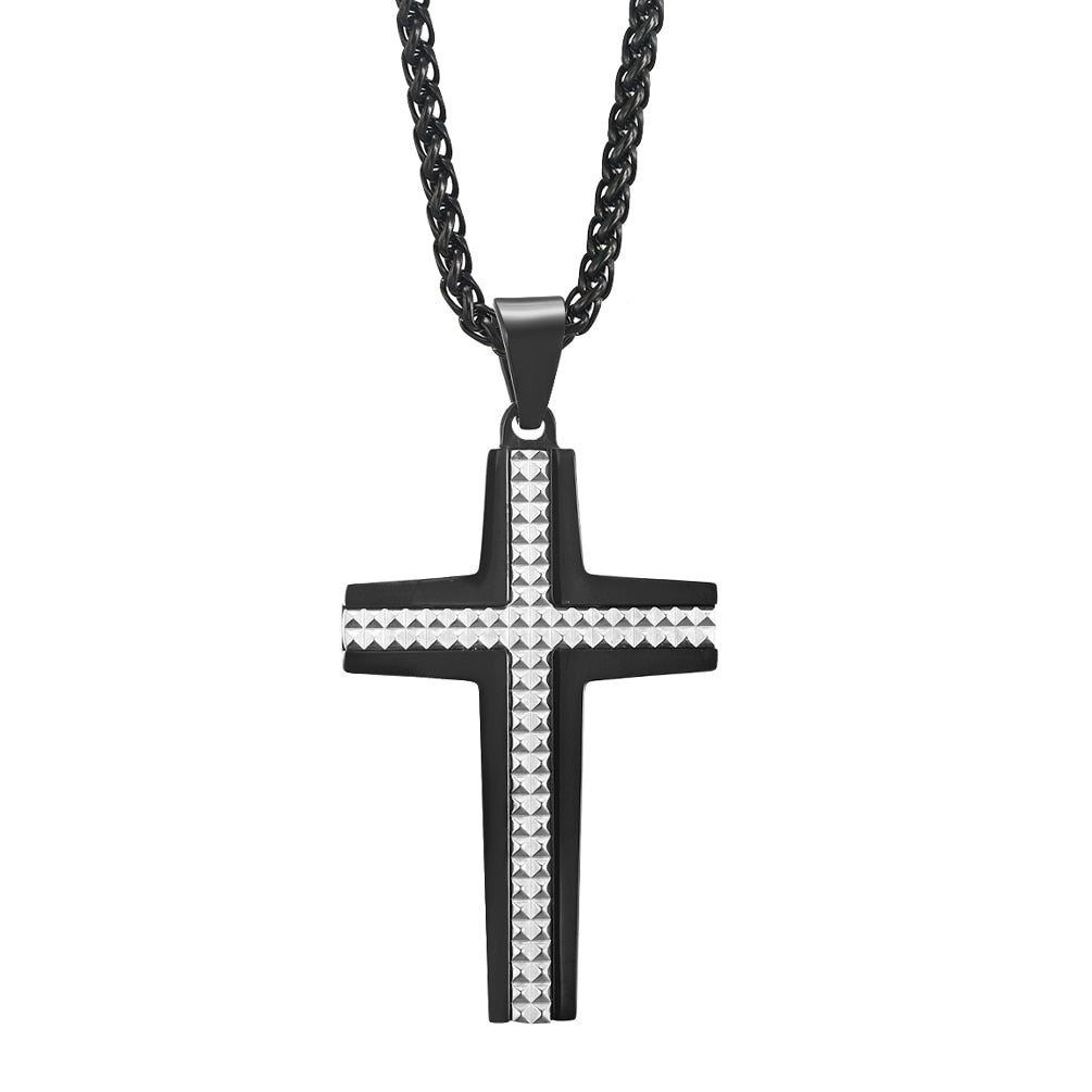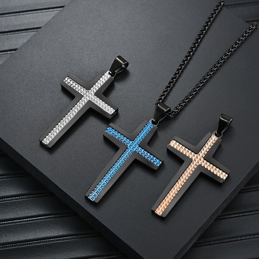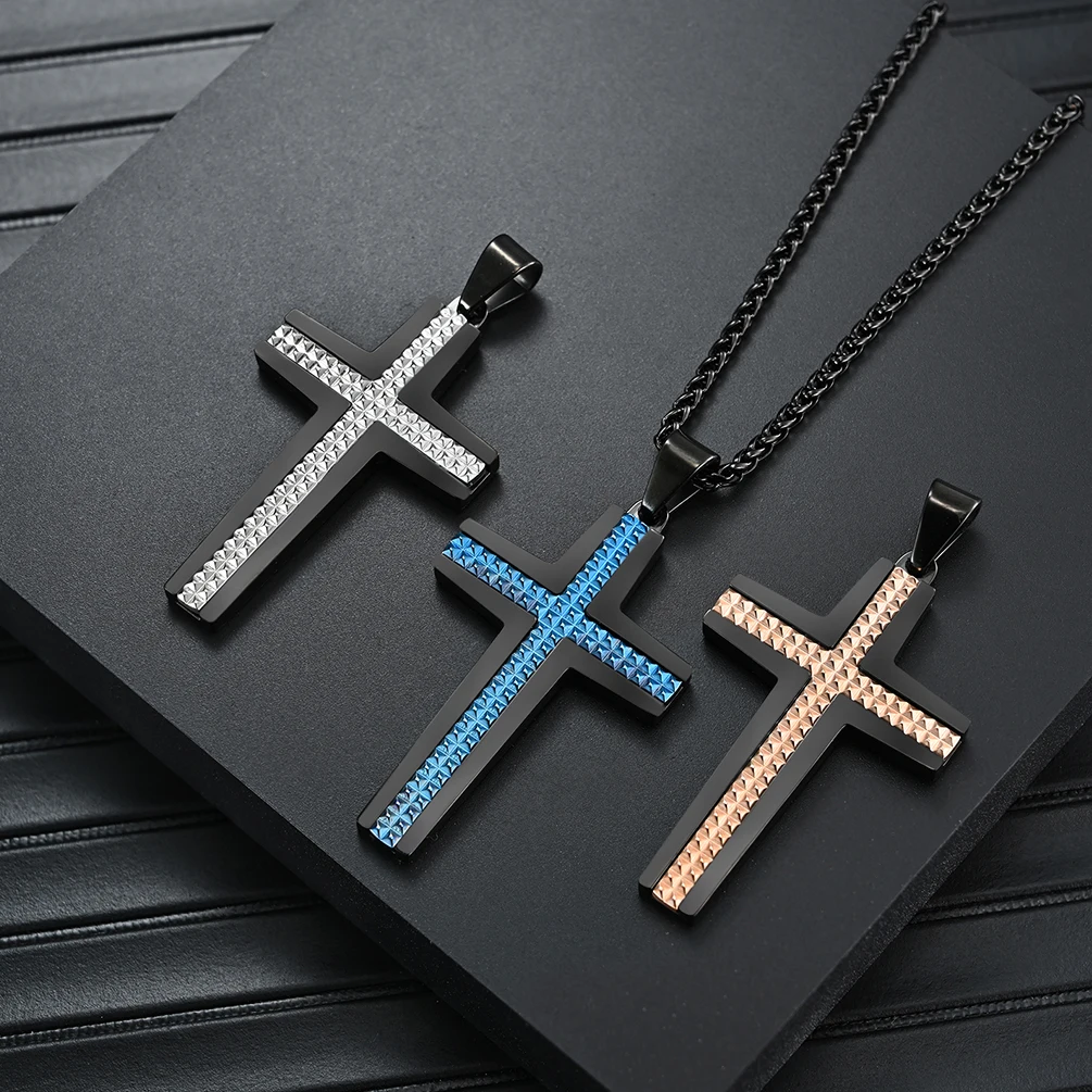 Cross Jewelry Stainless Steel Multi Small Rhombus Contrast Black Blue Pendant for Men and Women 48*29mm